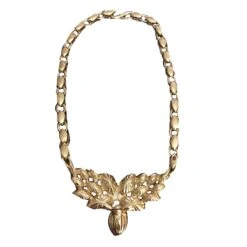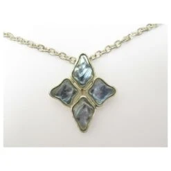 VINTAGE COLLIER YVES SAINT LAURENT BROCHE PIERRE BLEUE GOOSSENS BROOCH NECKLACE Argenté