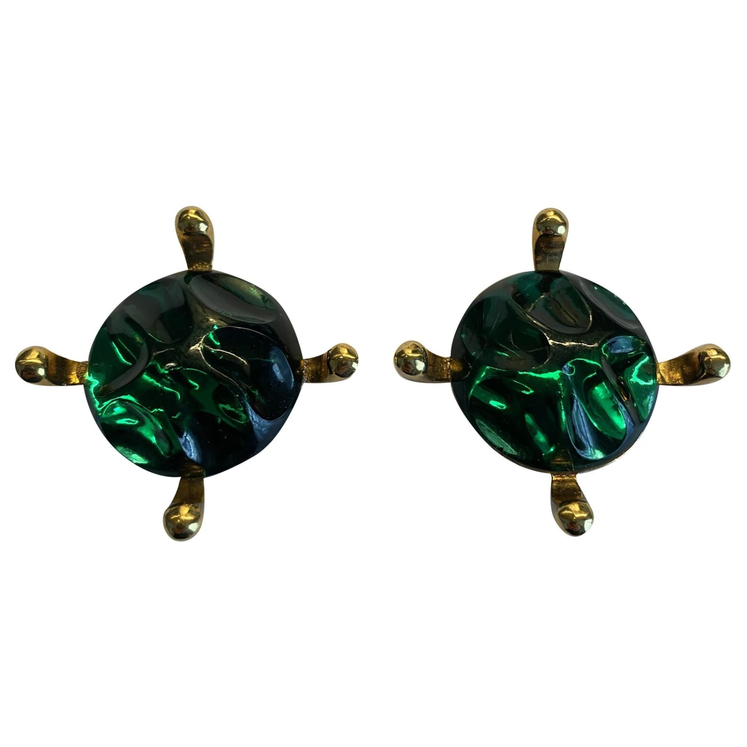 Boucles D’oreilles Yves Saint Laurent Vert Foncé
