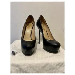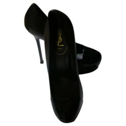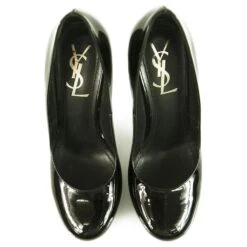 Yves Saint Laurent YSL Tribute Escarpins à Plateforme En Cuir Verni Noir à Bout Rond 37