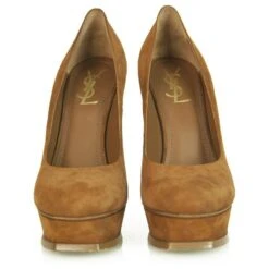 Yves Saint Laurent YSL Tribute TRIBTOO Escarpins à Talons Plateforme En Daim Marron à Bout Rond 40