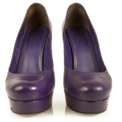 Yves Saint Laurent YSL Tribute Escarpins à Talons Plateformes En Cuir Violet à Bout Rond 37