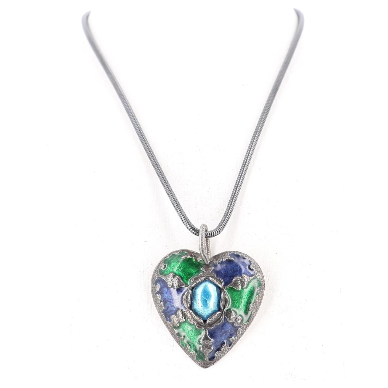 chaîne et pendentif en métal de cuivre, résine verte et bleue sur le pendentif