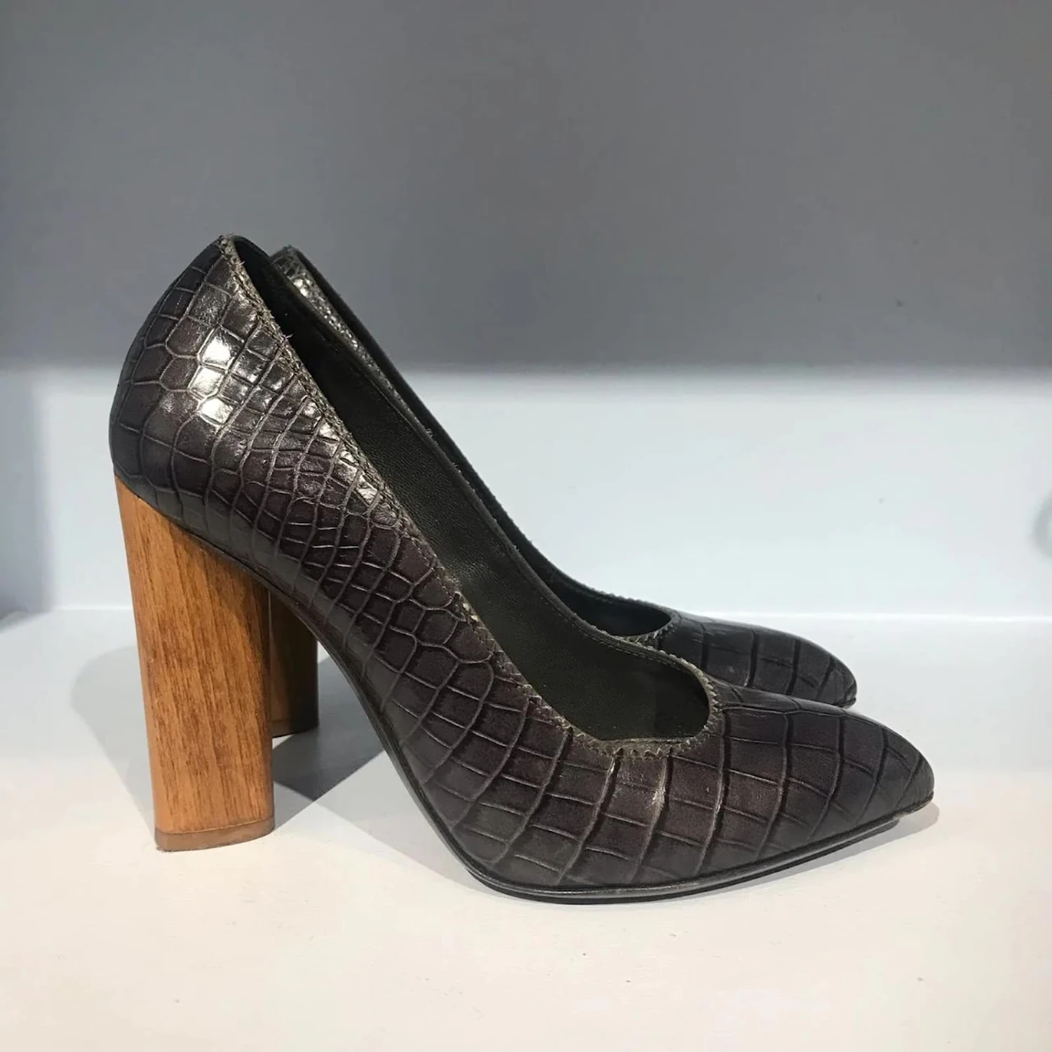 Escarpins Yves Saint Laurent, size 35.5. Escarpins gris noix de coco et talon en bois. Hauteur taille 10 cm. Very good condition.