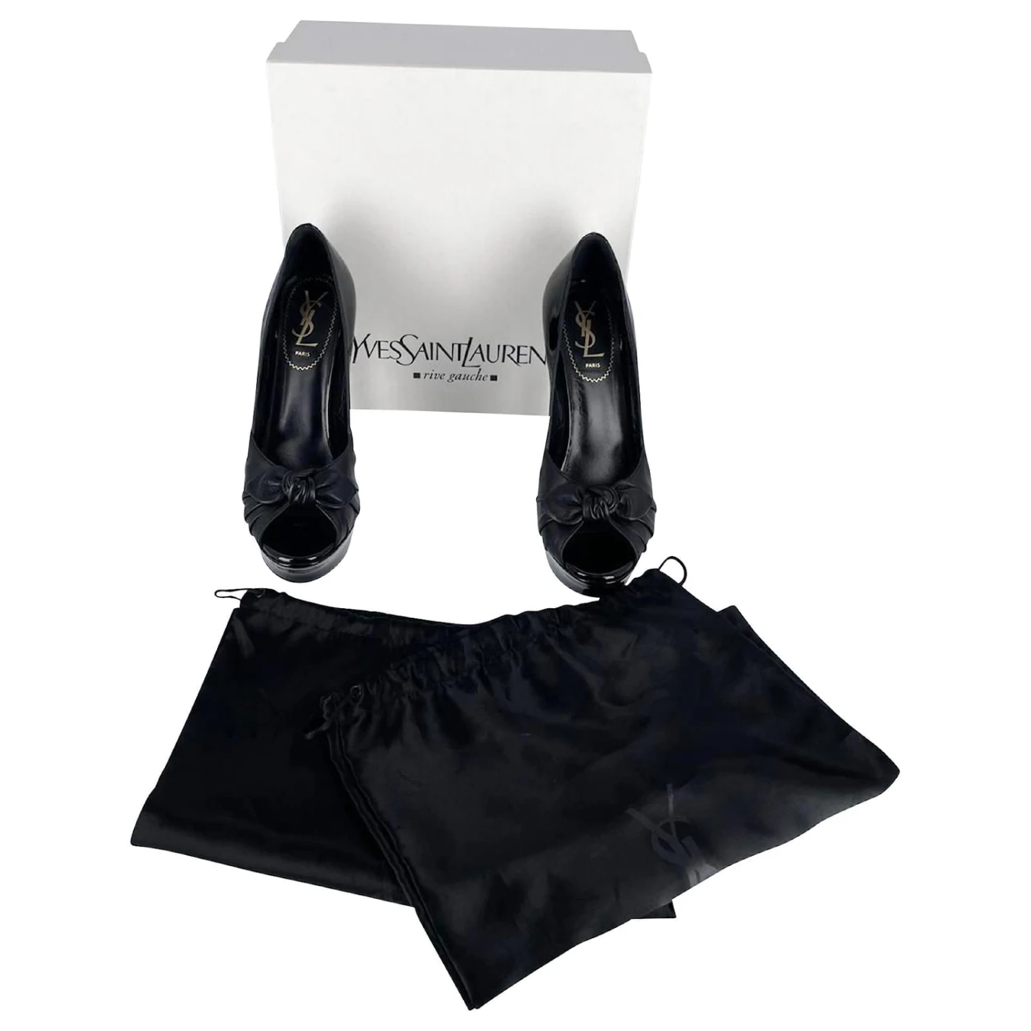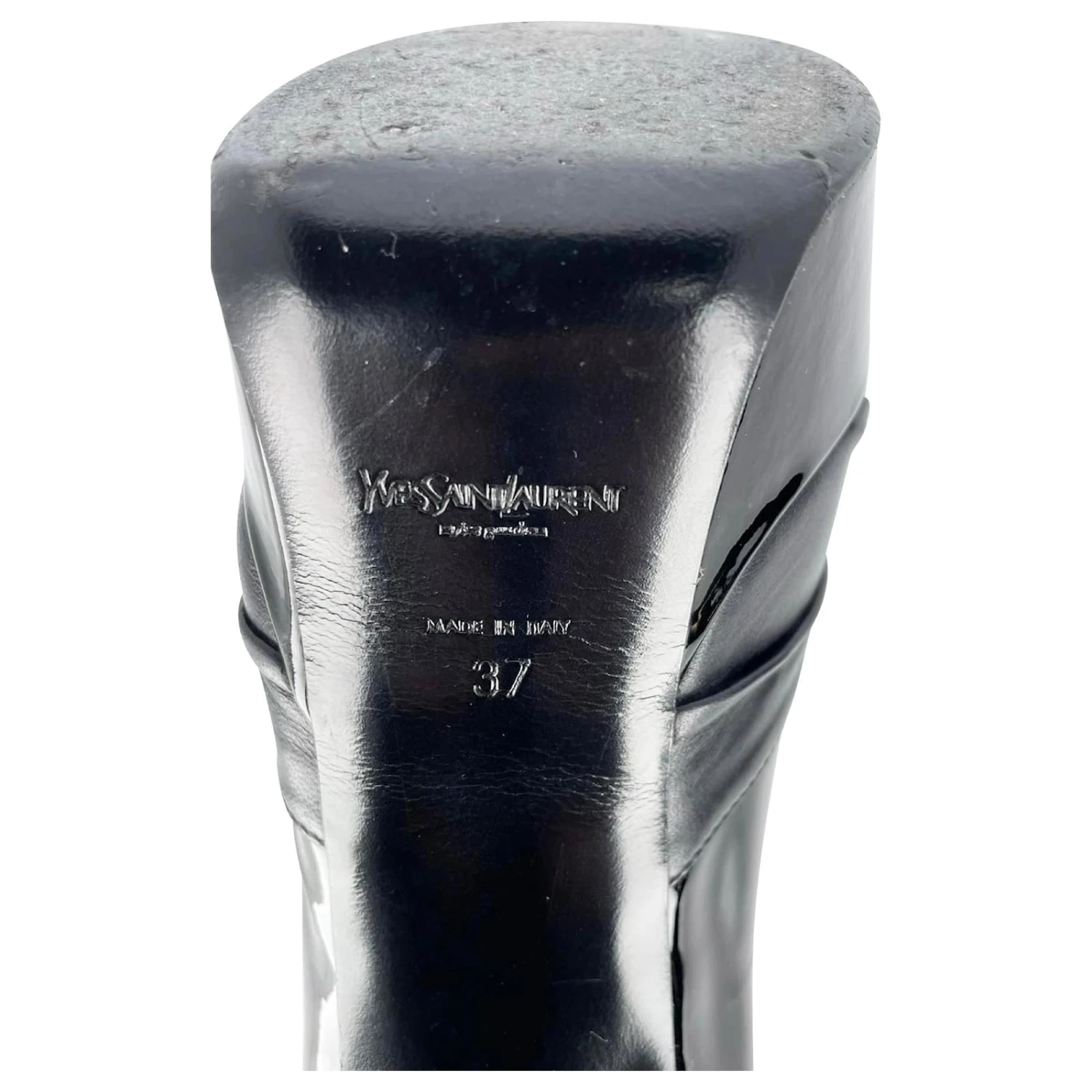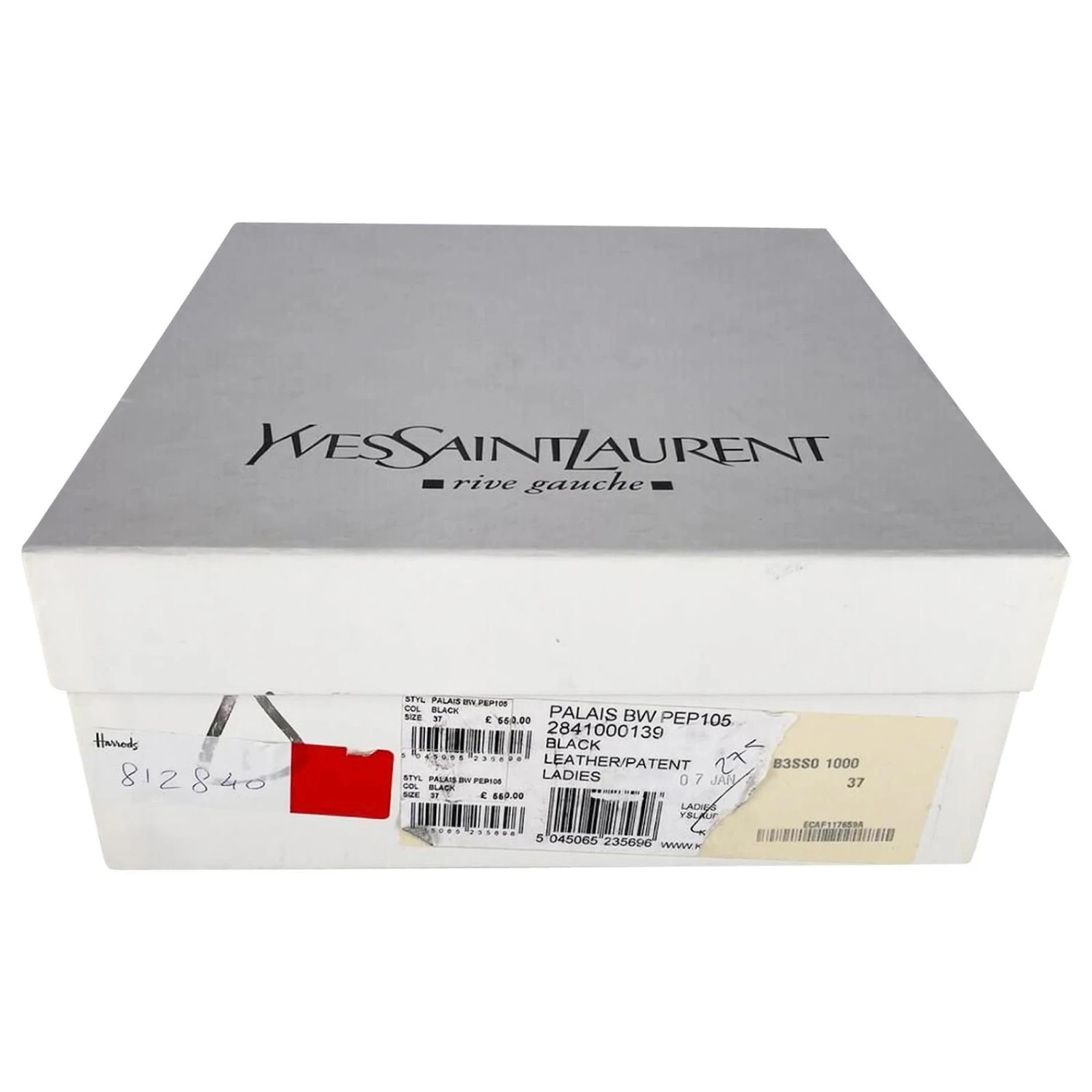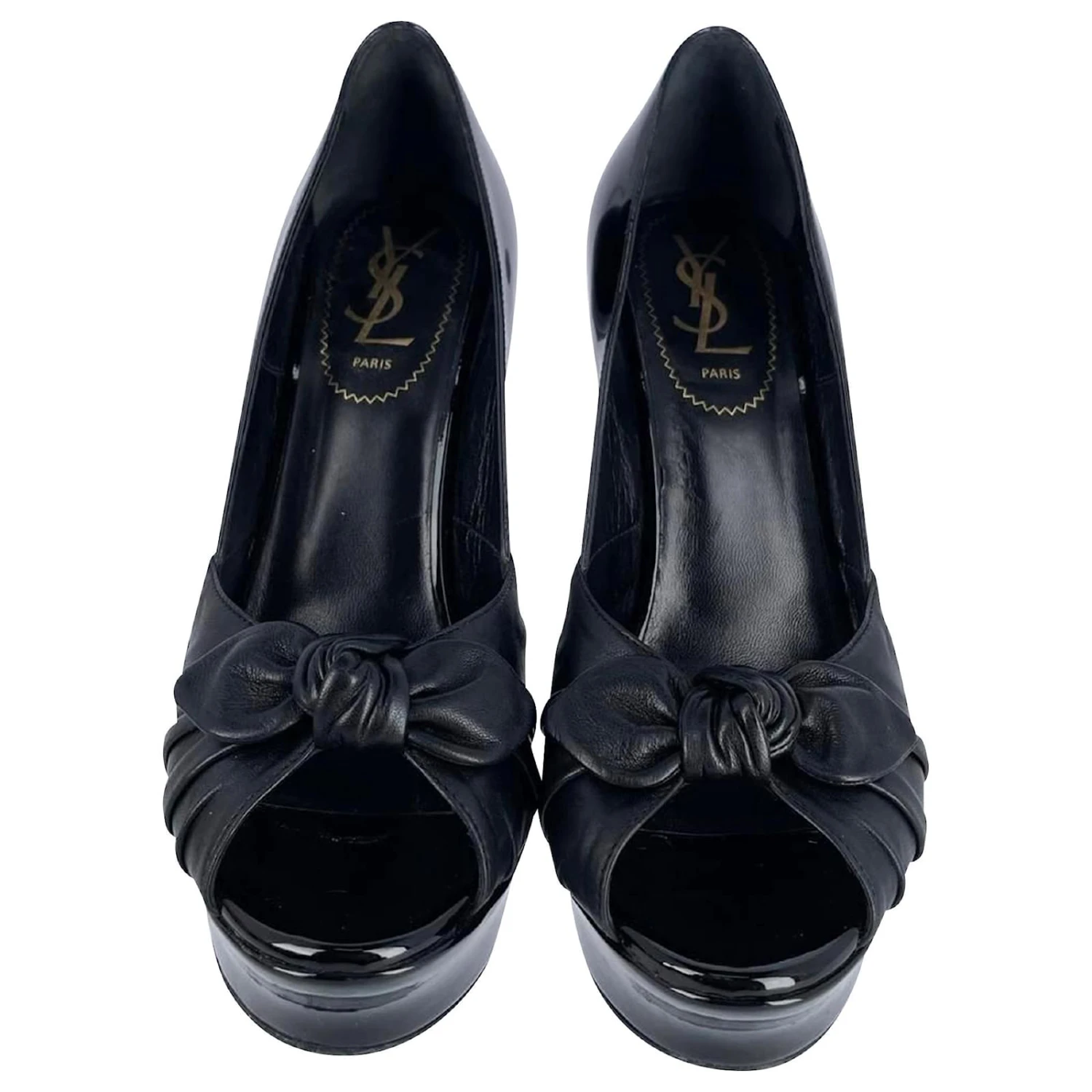 Portez ces escarpins chics de Saint Laurent Paris pour une grande soirée et obtenez tous les compliments. Ces escarpins à plateforme sont fabriqués à partir de cuir verni et de cuir et comportent des bouts ouverts, nœuds, plates-formes et 13.5talons hauts de cm. Les semelles intérieures sont doublées de cuir et portent les détails de la marque.