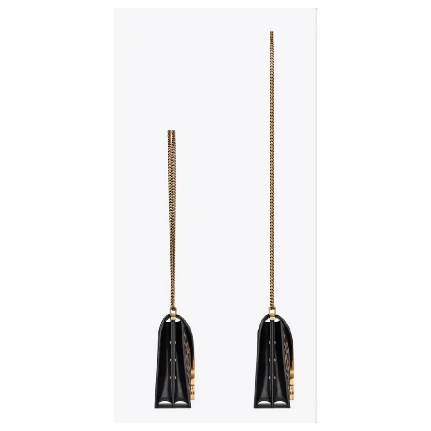 SAC MONOGRAMME SAINT LAURENT ORNÉ D’UN RABAT À L’AVANT ET DE STUDS SUR LES COTÉS, DE DEUX COMPARTIMENTS, D’UNE POCHE PLATE À L’AVANT MUNIE D’UN FERMOIR YSL PIVOTANT, ET D’UNE DOUBLE CHAÎNE GOURMETTE.