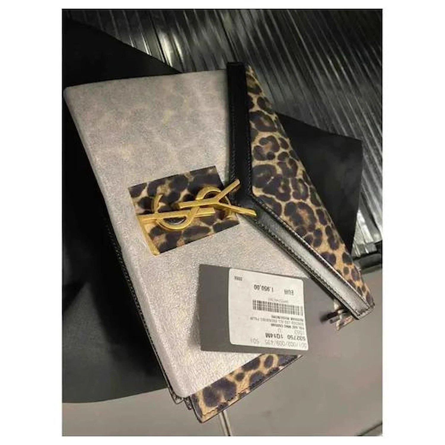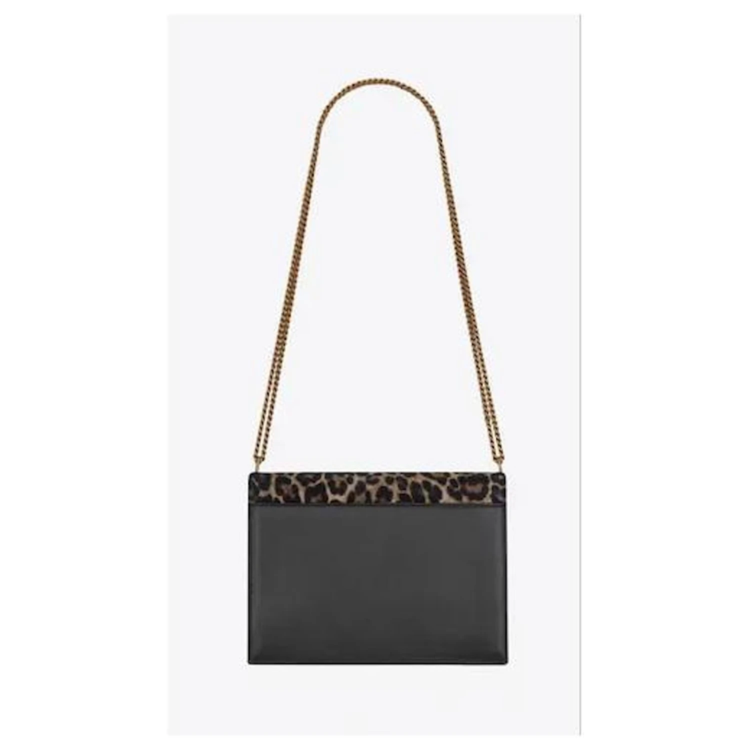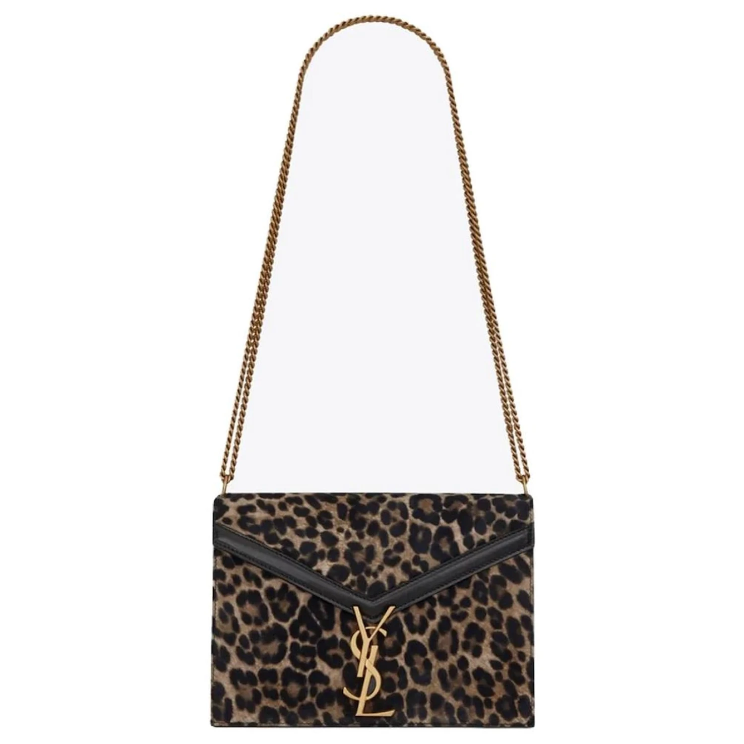 sac CASSANDRA FERMOIR MONOGRAMME MEDIUM EN SUÈDE À IMPRIMÉ LÉOPARD ET CUIR LISSE
