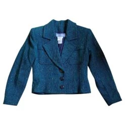 Veste courte vintage Yves Saint Laurent variation en laine chinée, belle couleur, très bon état intérieur et extérieur, coupe épaulée et cintrée très années 1980. Une valeur sûre.