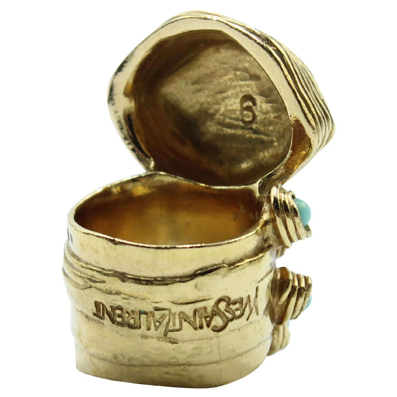Article à la mode, design audacieux avec pierre turquoise contrastante et métal doré. Livré avec dustbag d’origine.