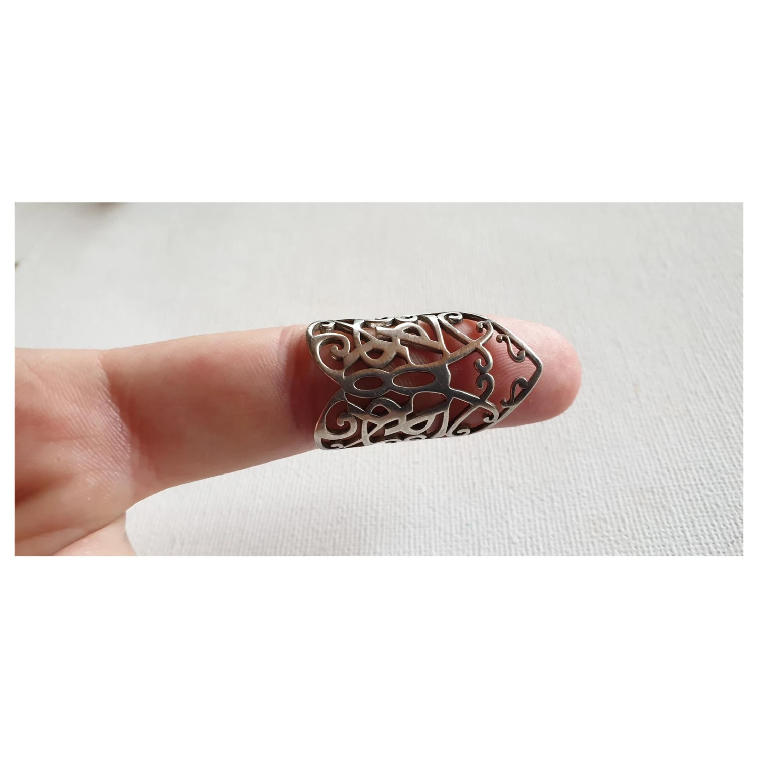 BagueyYSL en argent massif 925. Je vais la faire polir par ma bijoutiere cette semaine (déc 31). Elle est signé taille 16 donc 52 mais comme elle est épaisse elle convient mieux à une taille 51 tour du doigt. Vous pouvez voir le YSL dans le dessin de la bague sur les deux côtés. Elle est signé Ag 925 mais c très difficile à voir. Je crois que la signature YSL ne se voit plus mais je connais bien cet modèle car j ai le collier aussi de cette parure et les boucles d’oreilles qui vont avec sont facile à trouver sur internet pour comparer. Voilà. Bon shopping !