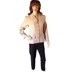 MAGNIFIQUE BLAZER BEIGE EN LAINE VIERGE ET LYCRA DE CHEZ YVES SAINT LAURENT – TAILLE 36/38