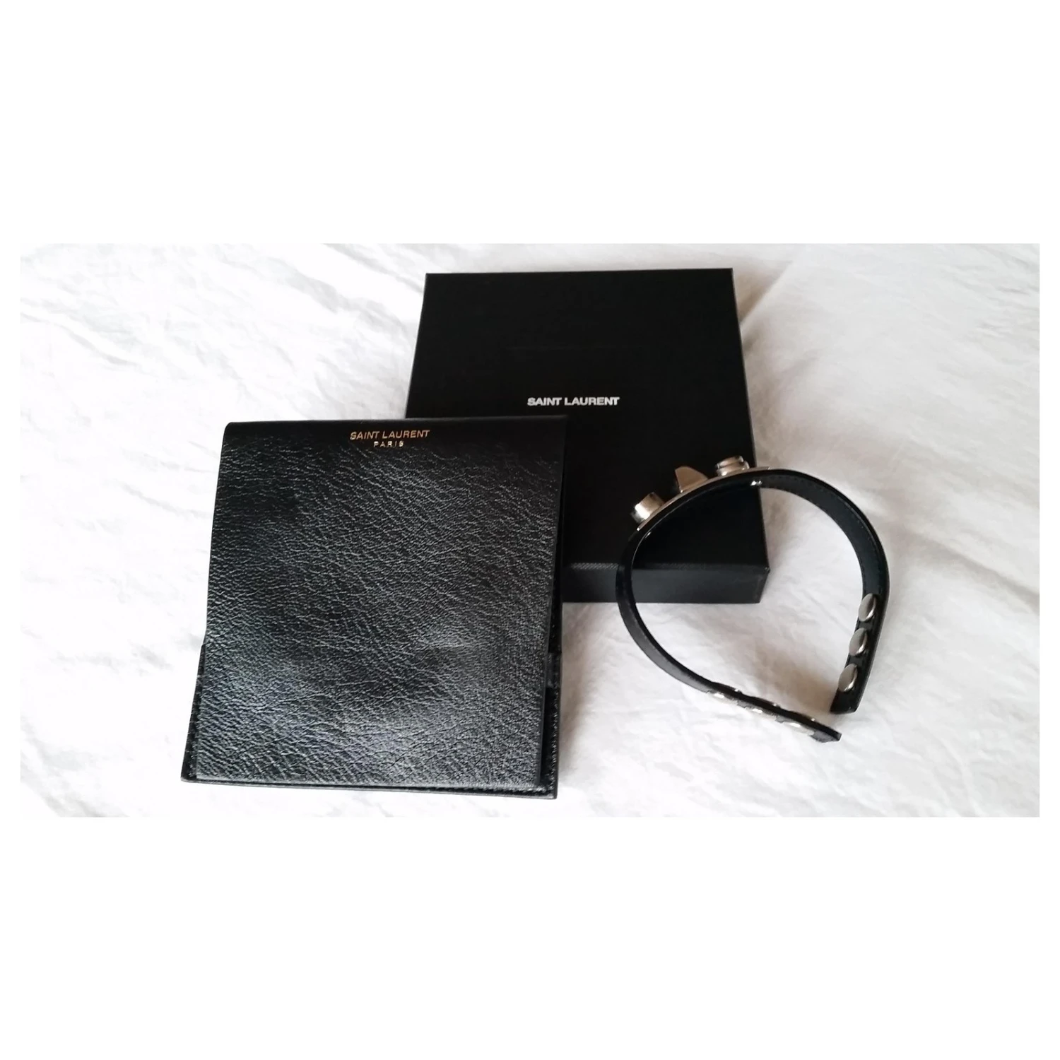 Bracelet en cuir Yves Saint Laurent homme/femme « Le trois clous », poinçonné, 3 boutons pression.