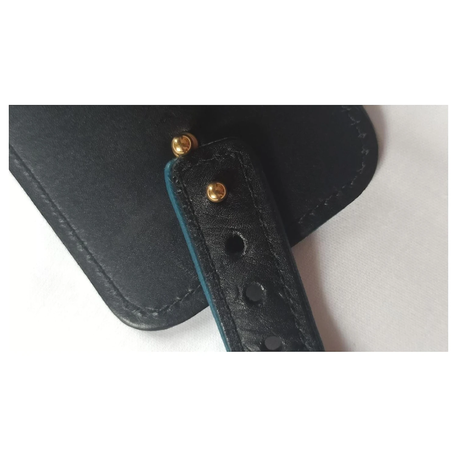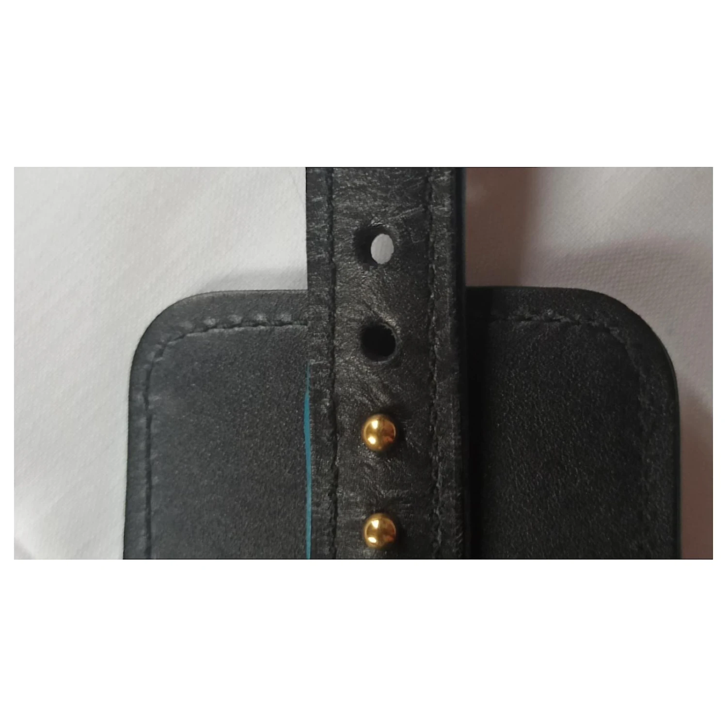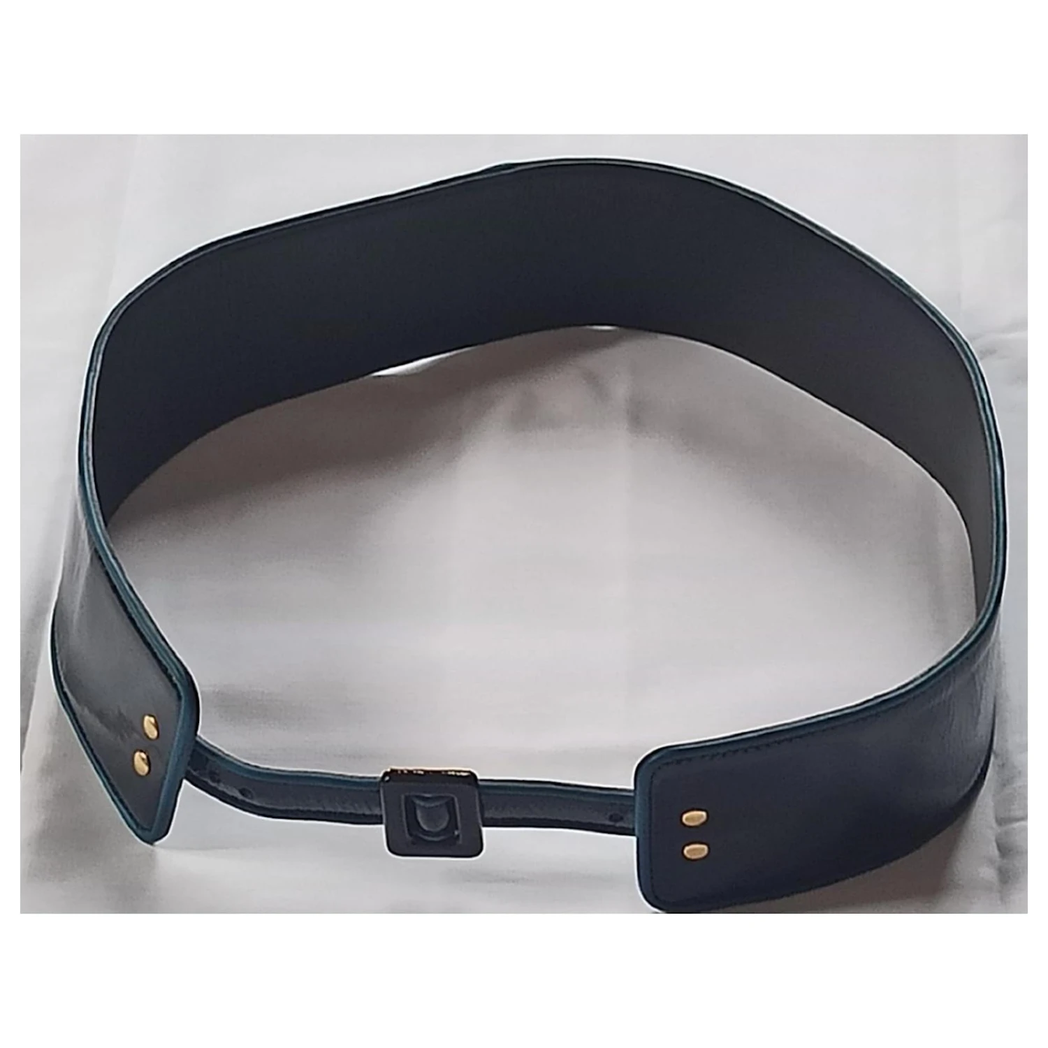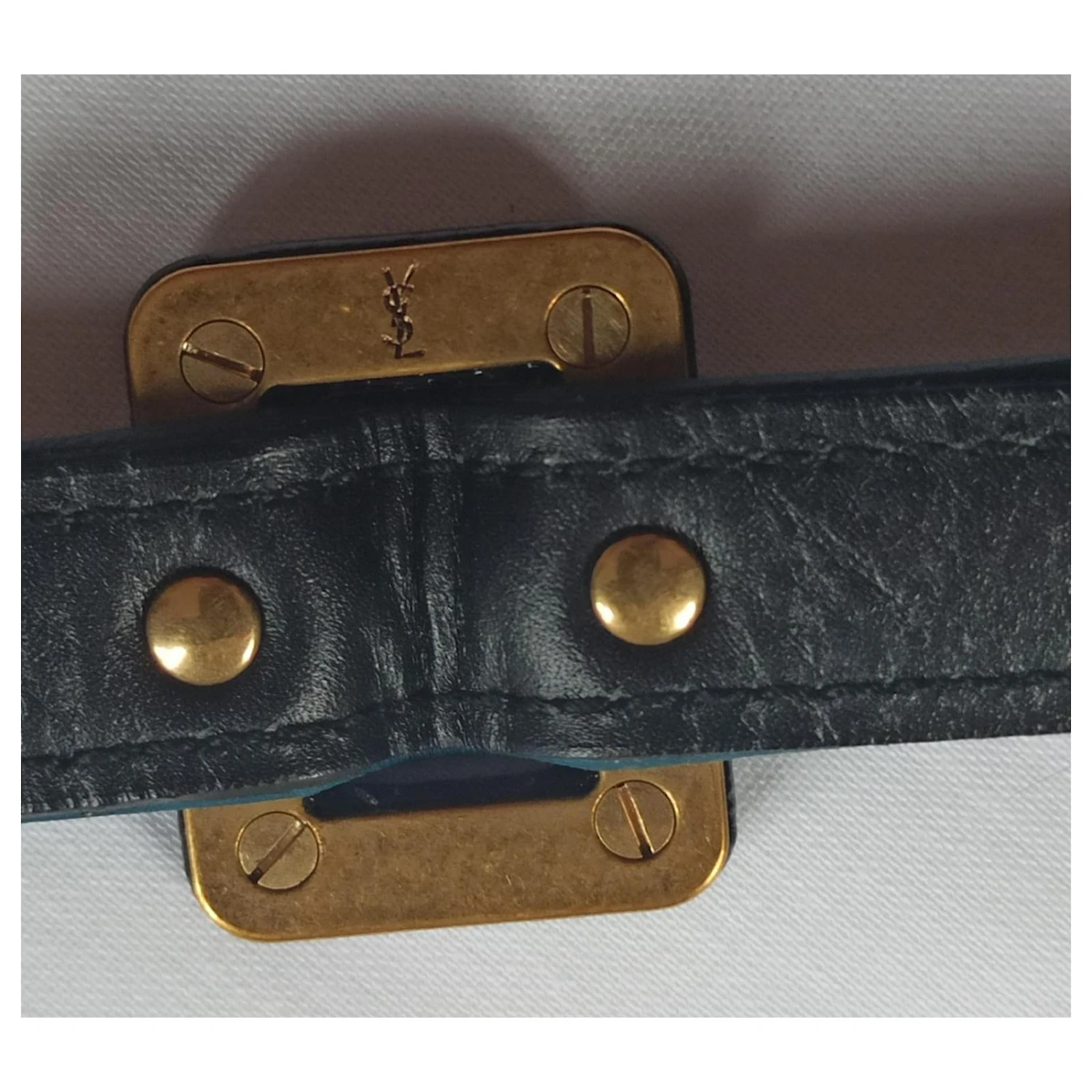 YSL ceinture large réglable à l’intérieur, en cuir vernis noir bordée en cuir bleu sarcelle. fermeture rectangle signé YSL.