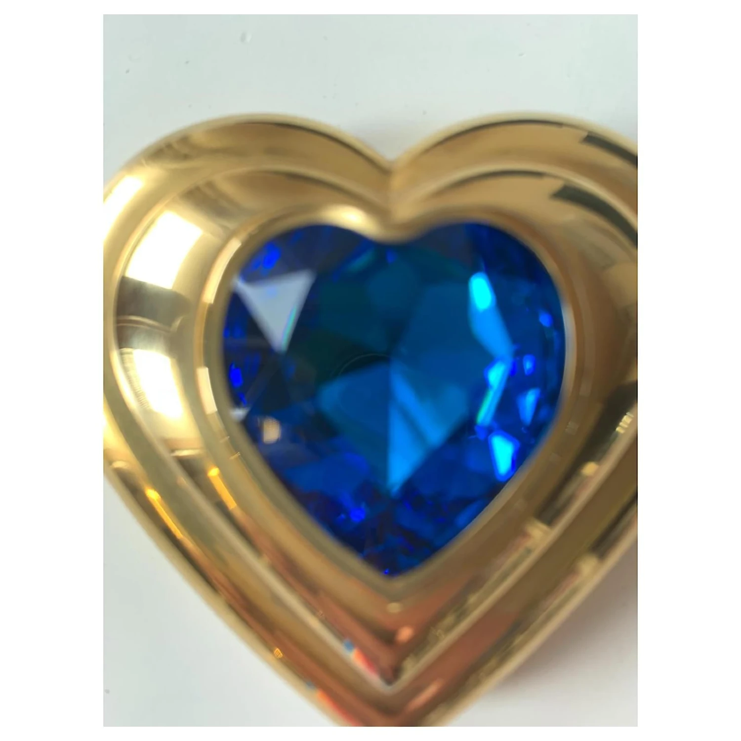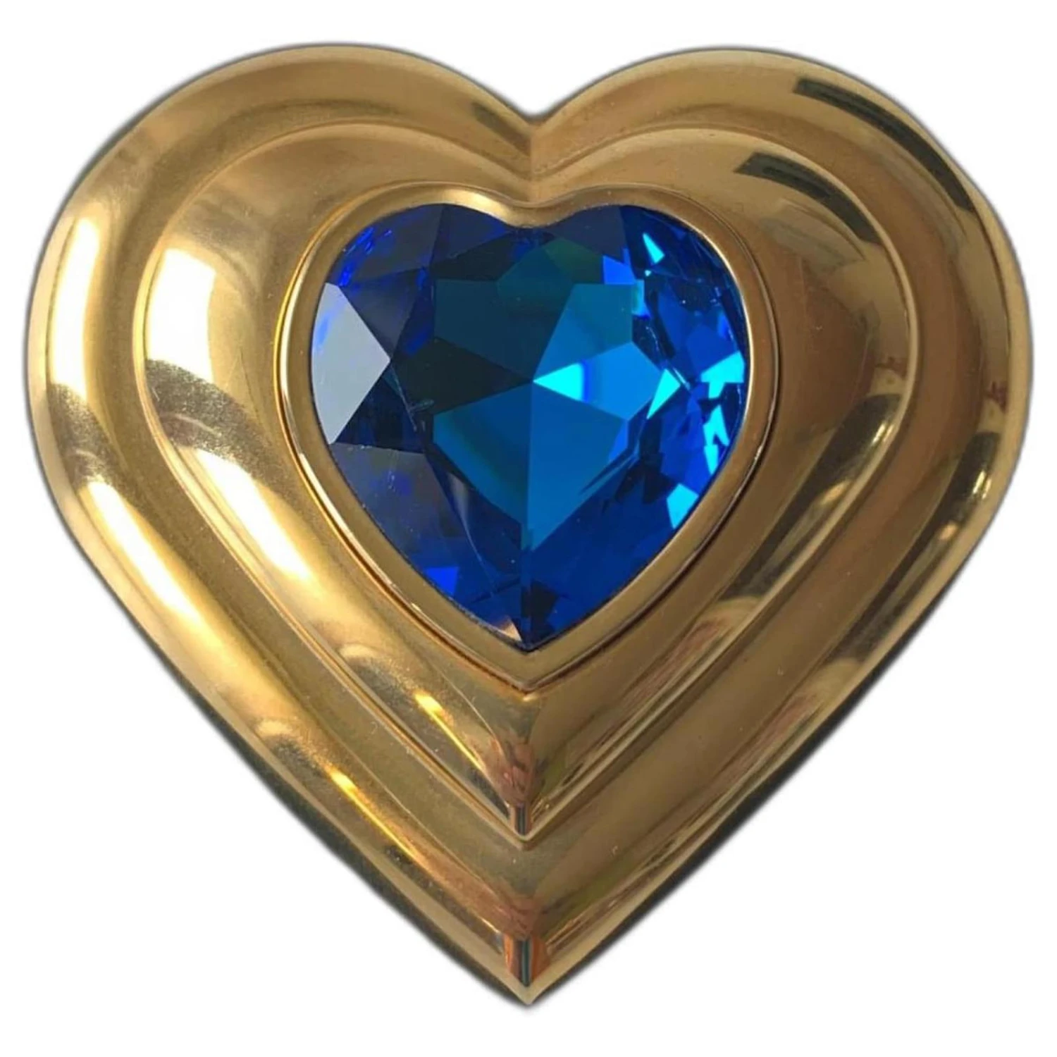 Poudrier en laiton massif figurant un cœur orné de godrons et incrusté d’un cristal Swarovski imitant un saphir.