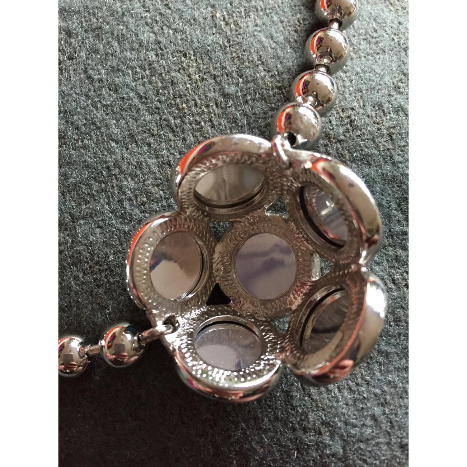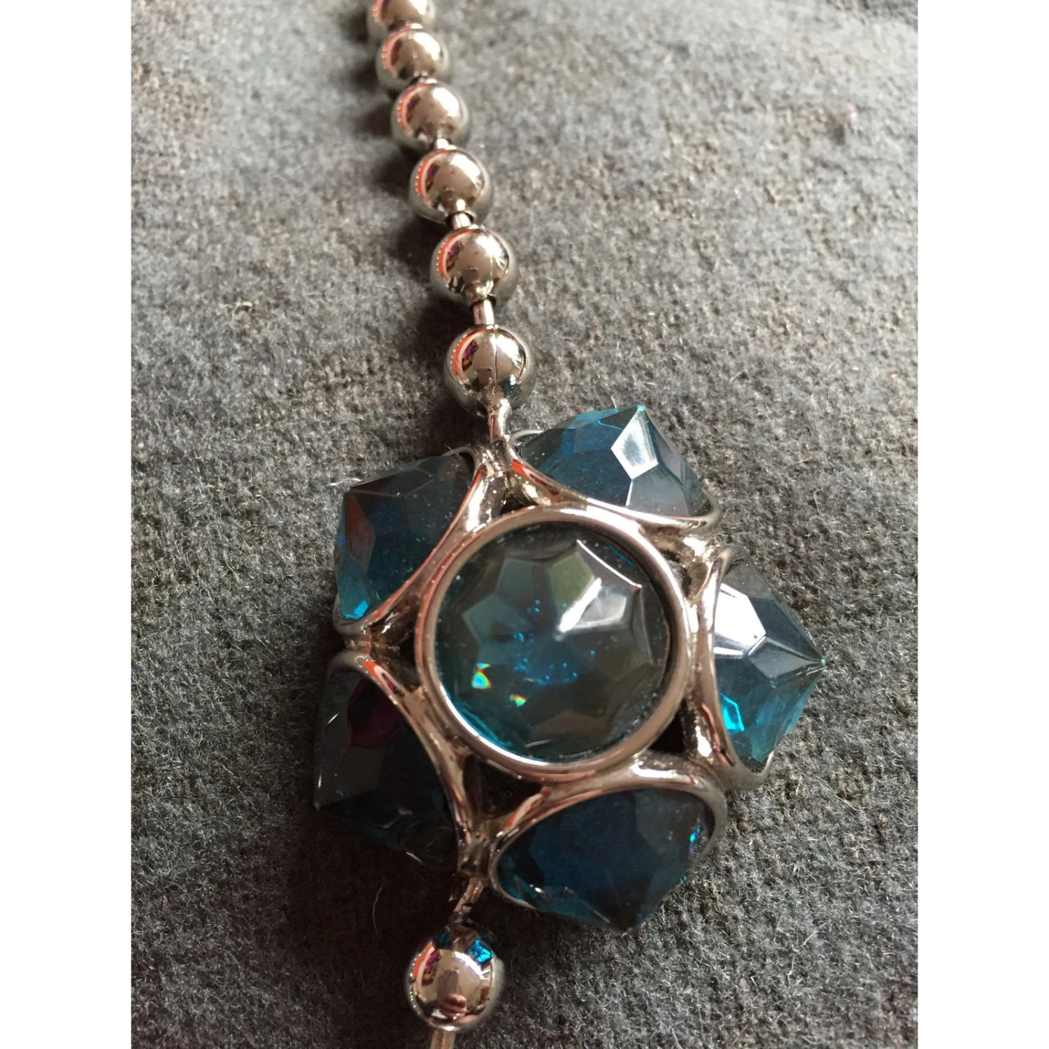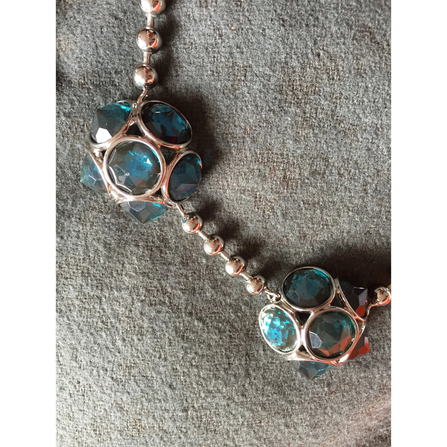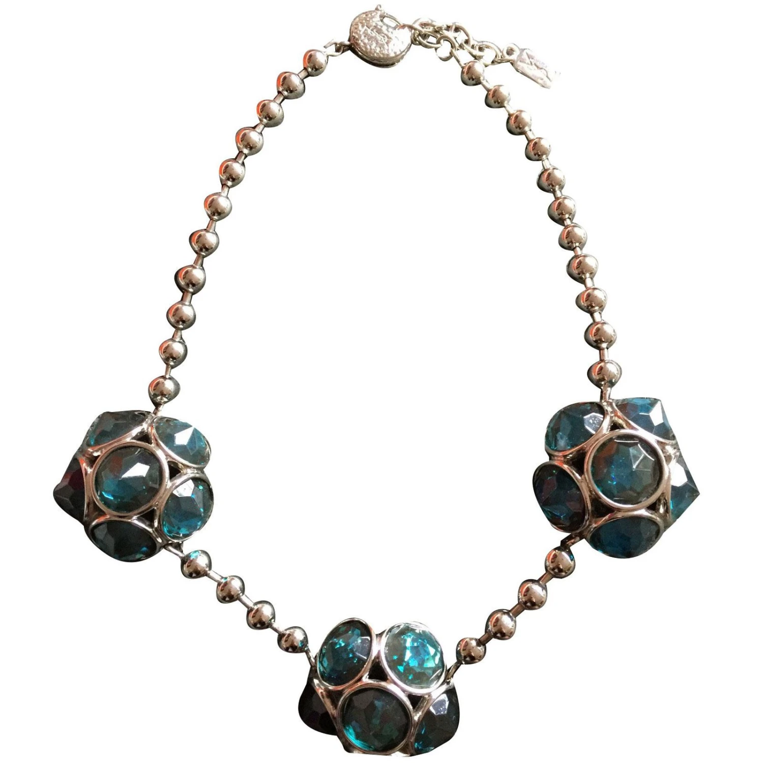 Superbe collier argenté avec de gros cabochons de couleur bleu