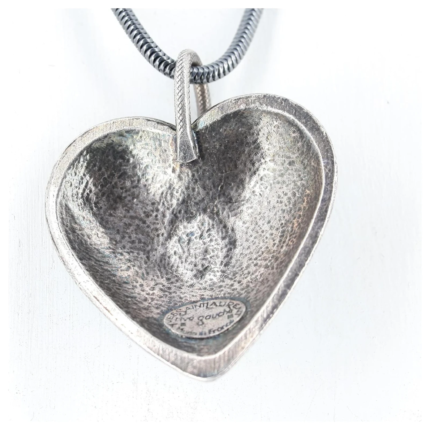 chaîne et pendentif en métal de cuivre, résine verte et bleue sur le pendentif