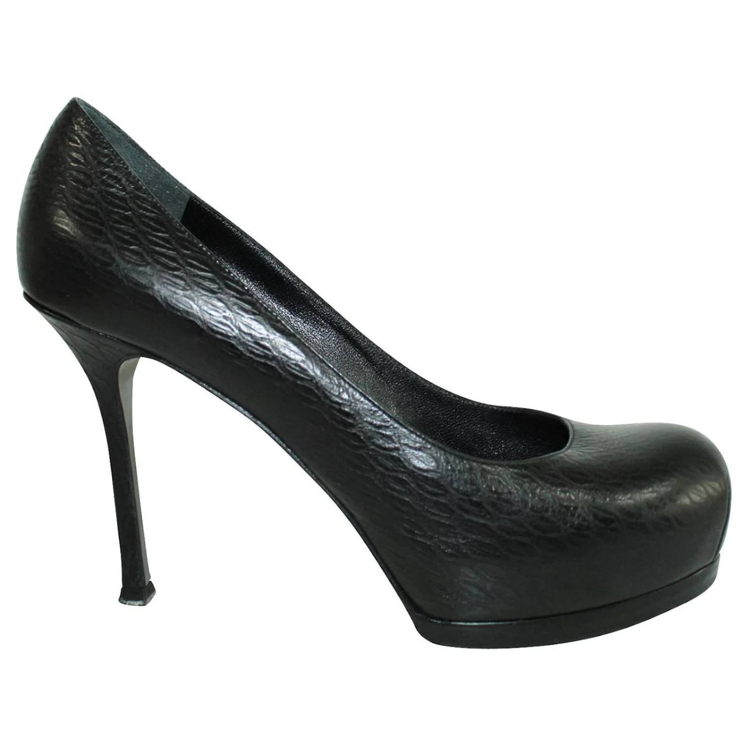 Yves Saint Laurent Escarpins à bout rond en cuir texturé noir