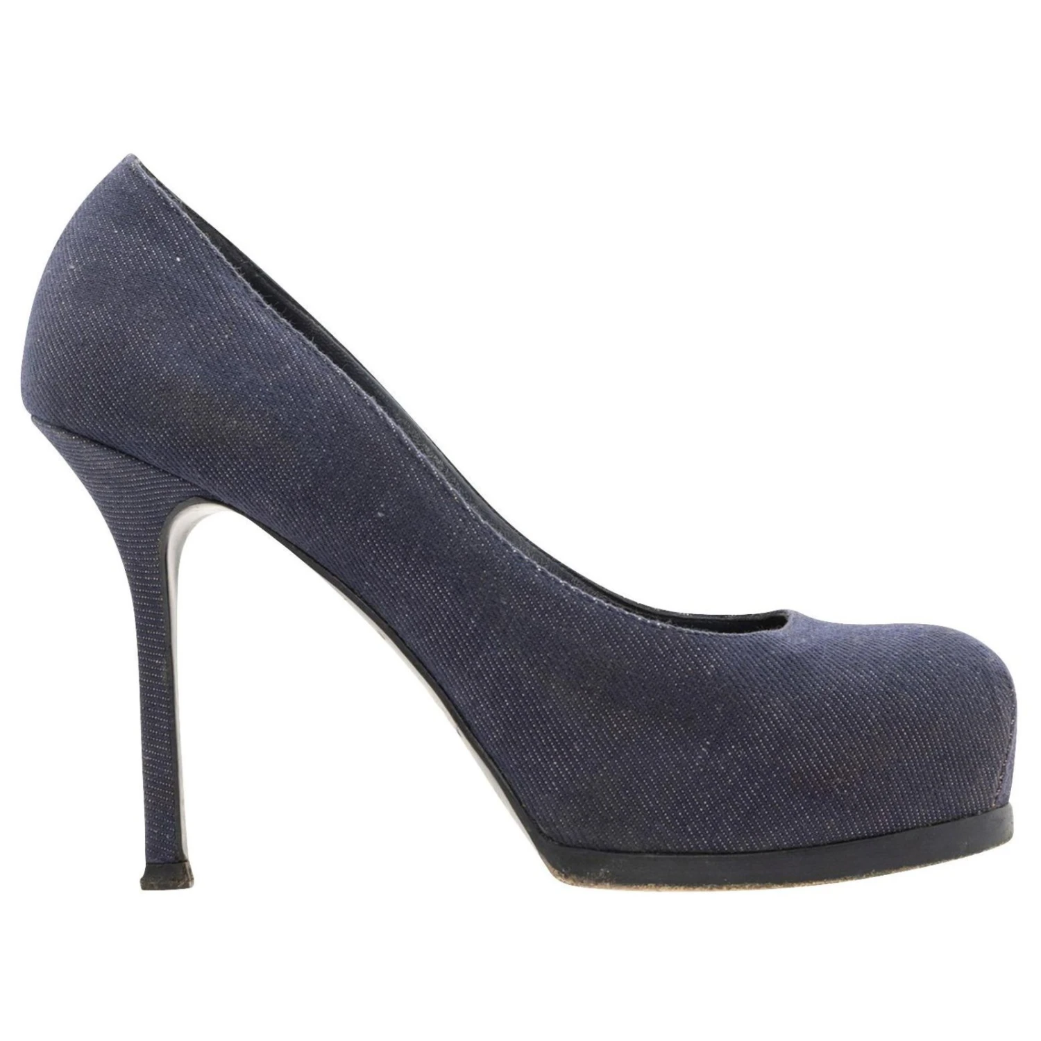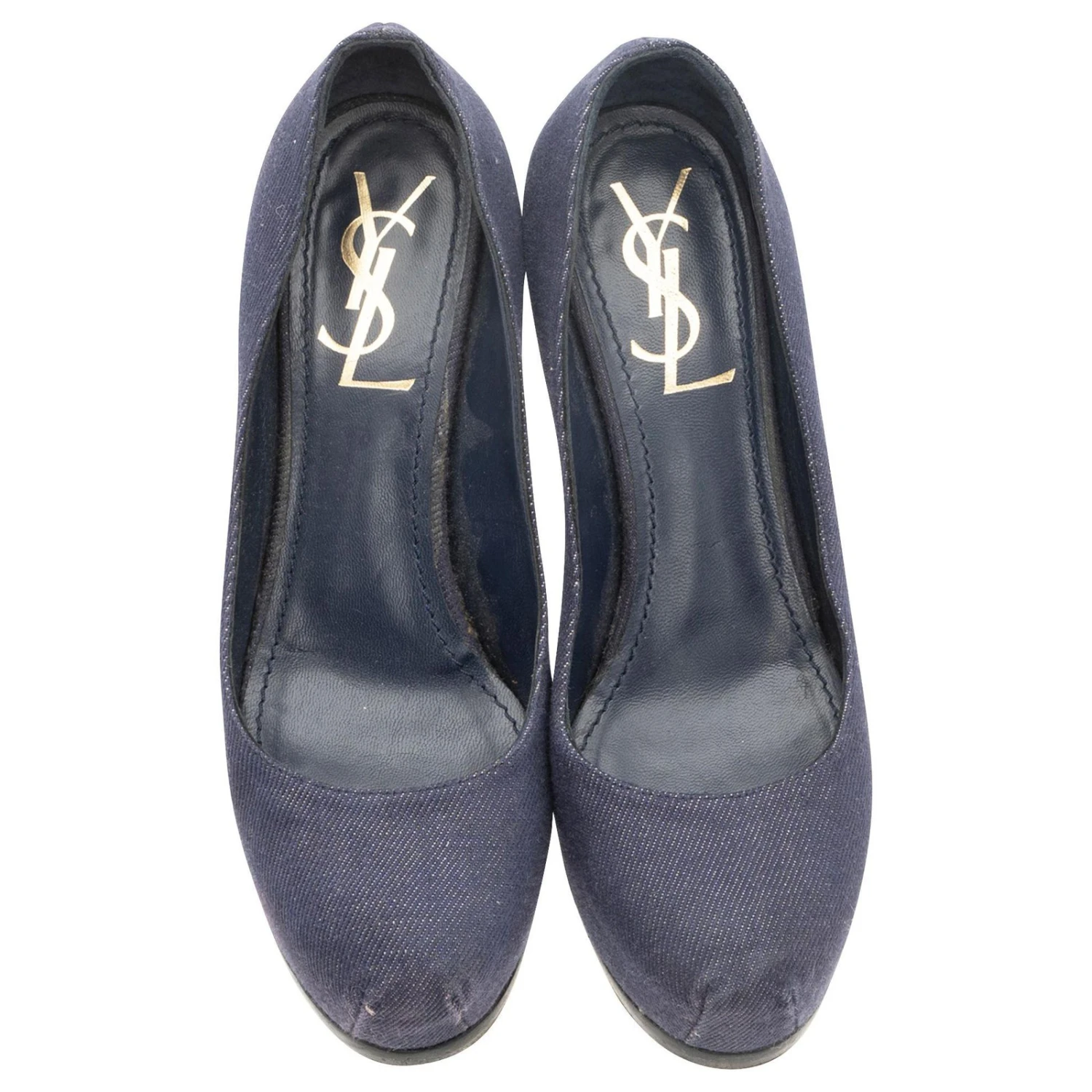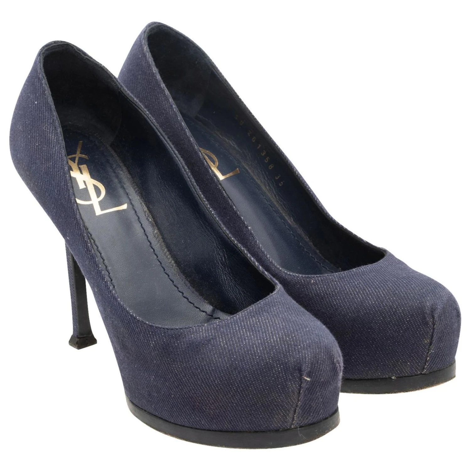 Escarpins à plateforme en jean bleu Yves Saint Laurent