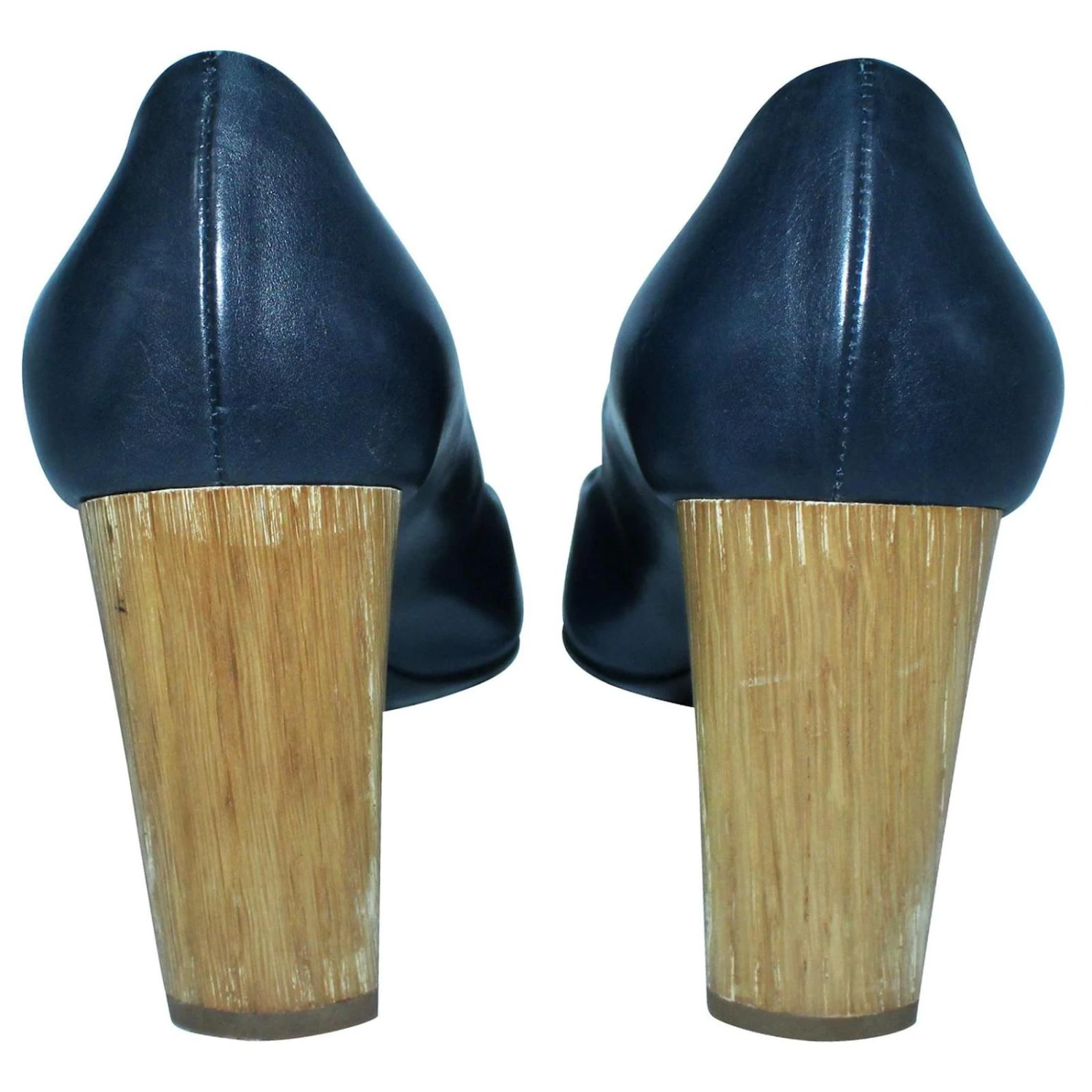 Yves Saint Laurent Escarpins En Bois Bleu Marine