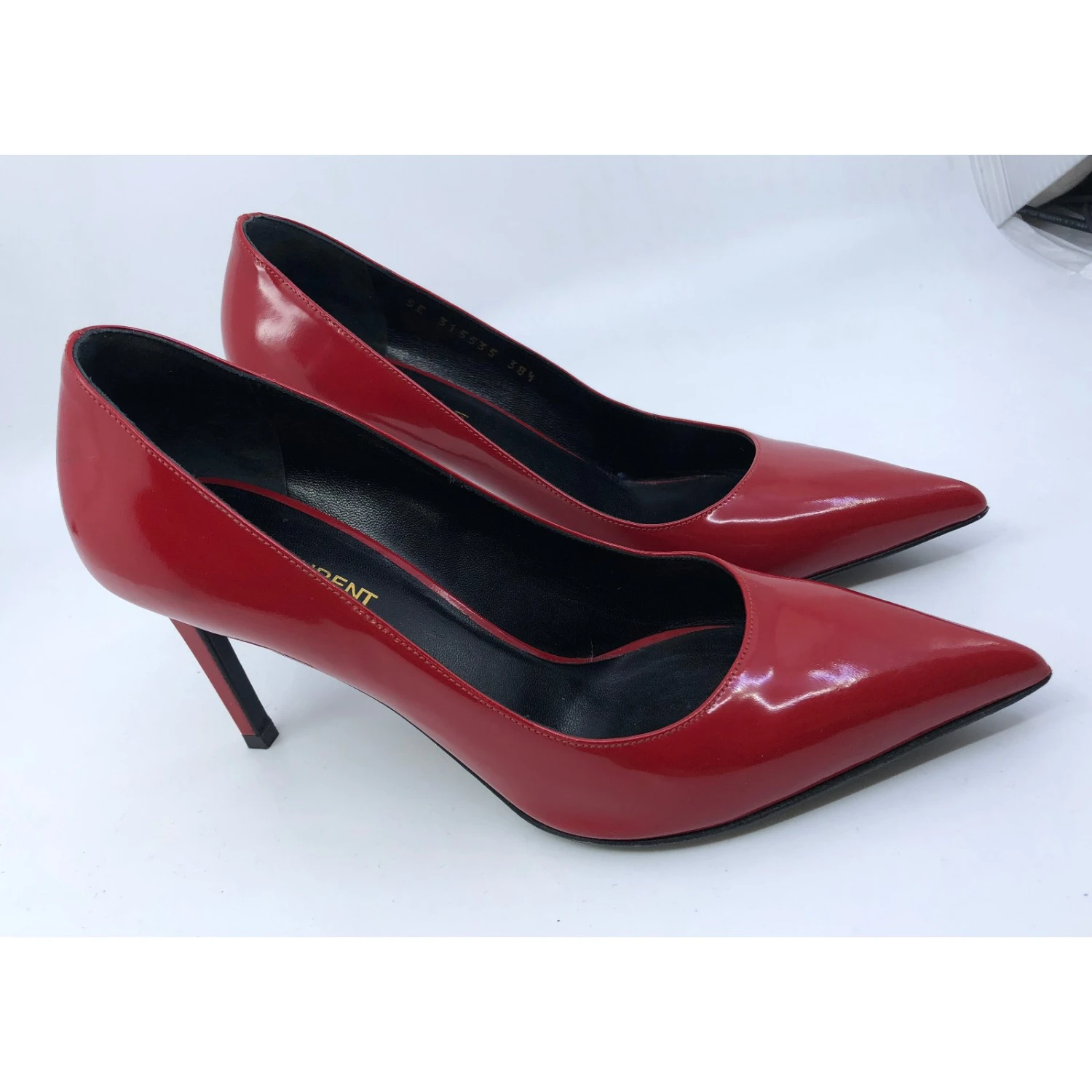 Escarpins Saint Laurent en cuir glisse, couleur rouge. Longueur de la semelle intérieur 25 cm , hauteur du talon 8.5 cm. Sans boîte, ni dustbag.