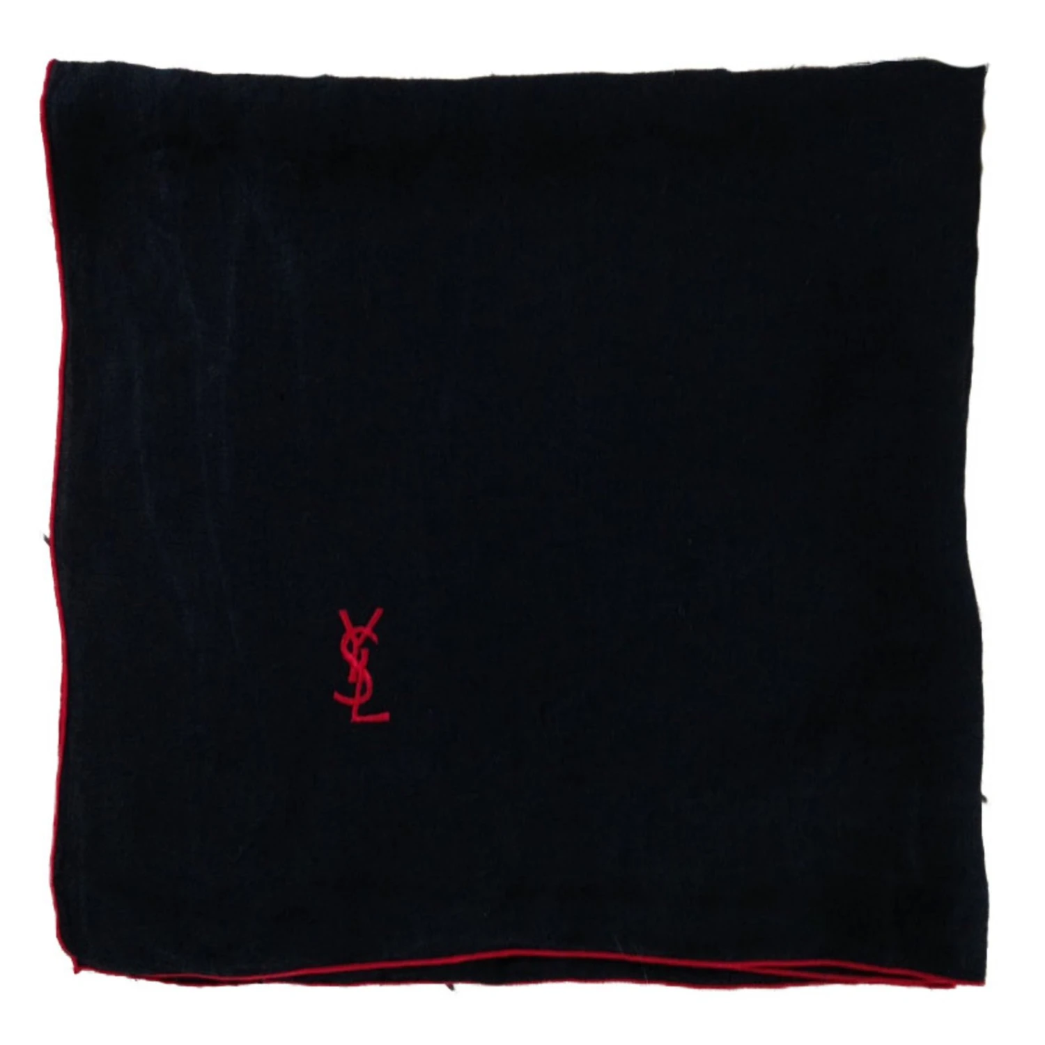 Carré Yves Saint Laurent en coton noir siglé YSL avec liseré rouge