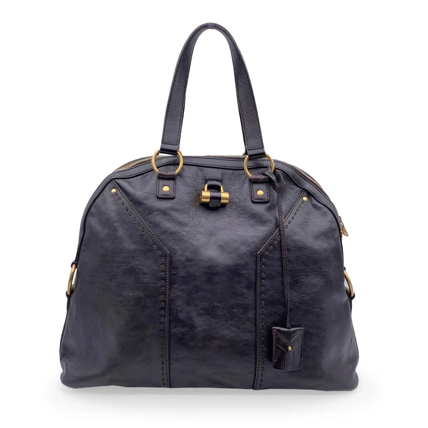 Iconique YVES SAINT LAURENT ‘Grand sac Muse’ en cuir marron foncé. Le sac comporte du matériel en métal doré, surpiqûres fouettées et emblématique cadenas Muse sur le devant (Les clés sont incluses). La fermeture à glissière supérieure s’ouvre sur un intérieur spacieux doublé d’une doublure en satin marron, 1 poche latérale zippée et 1 poche ouverte latérale à l’intérieur. Etiquette ‘YVES SAINT LAURENT – Rive Gauche’ à l’intérieur (avec ‘Made in Italy’ et numéro de série au verso) Détails MATÉRIEL: couleur du cuir: MODELE MARRON: Muse GENRE: Femme PAYS DE FABRICATION: Italie TAILLE: style grand: FERMETURE: MOTIF DE FERMETURE ÉCLAIR: MATÉRIAU DE DOUBLURE solide: dustbag en satin? no box? Pas de clés? Oui État B – TRÈS BON Peu utilisé. quelques légères rayures sur le cuir dues à une utilisation normale. Veuillez vérifier attentivement les photos et demander si vous avez besoin de plus de détails ou si vous avez des doutes.: 13 Pouces – 33.02 cm LONGUEUR DU SAC: 19 Pouces – 48.26 cm PROFONDEUR DU SAC: 6 Pouces – 15,2 cm Hauteur de sangle: poignée baisse: 7.5 Pouces – 19.05 cm