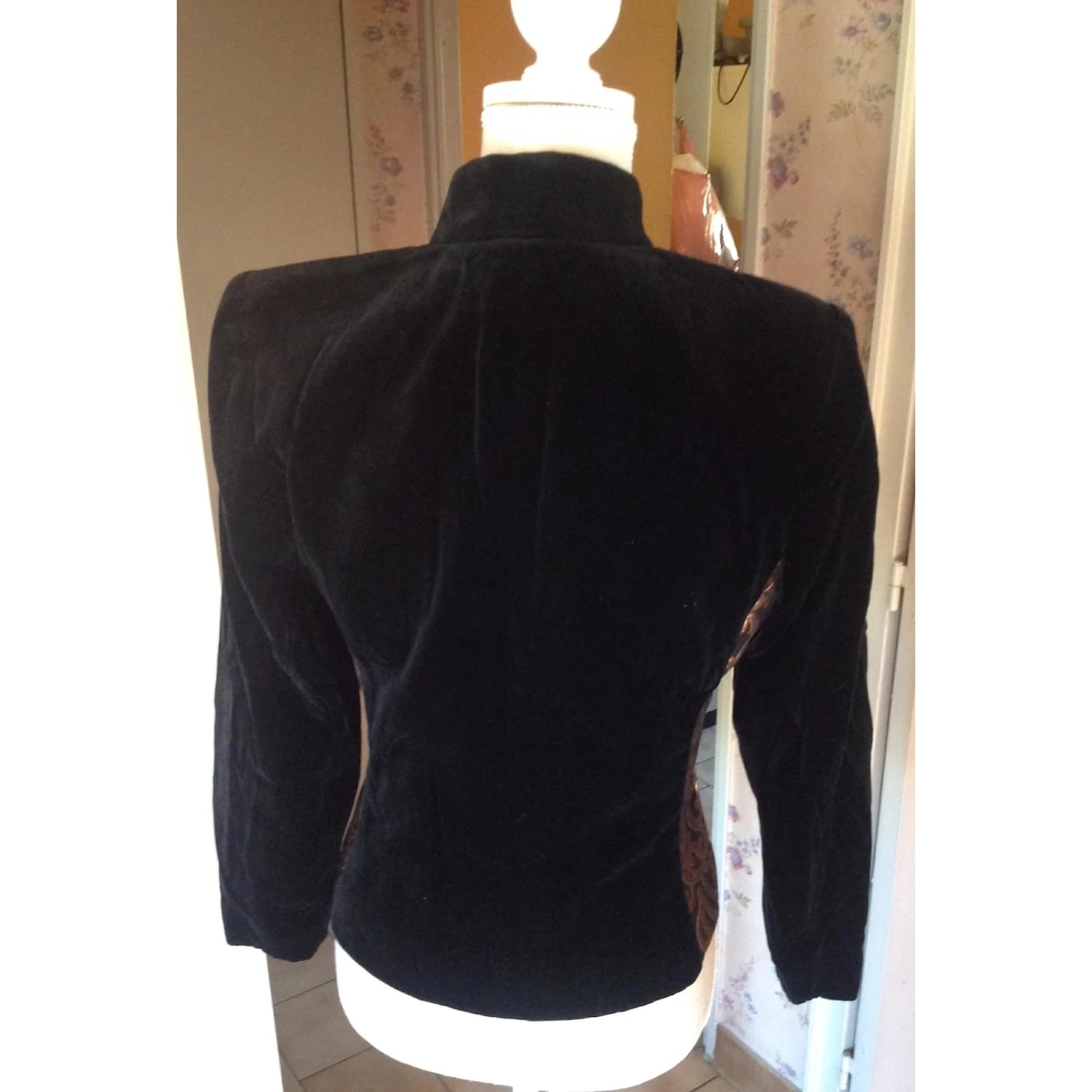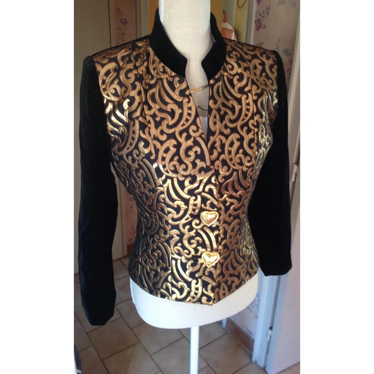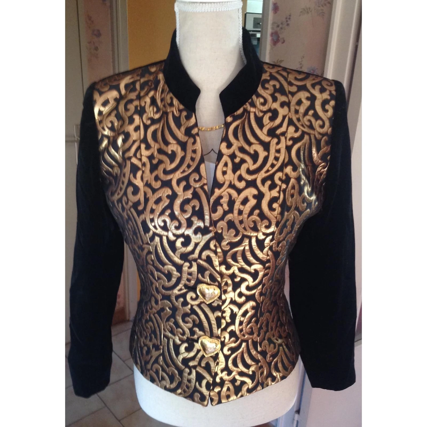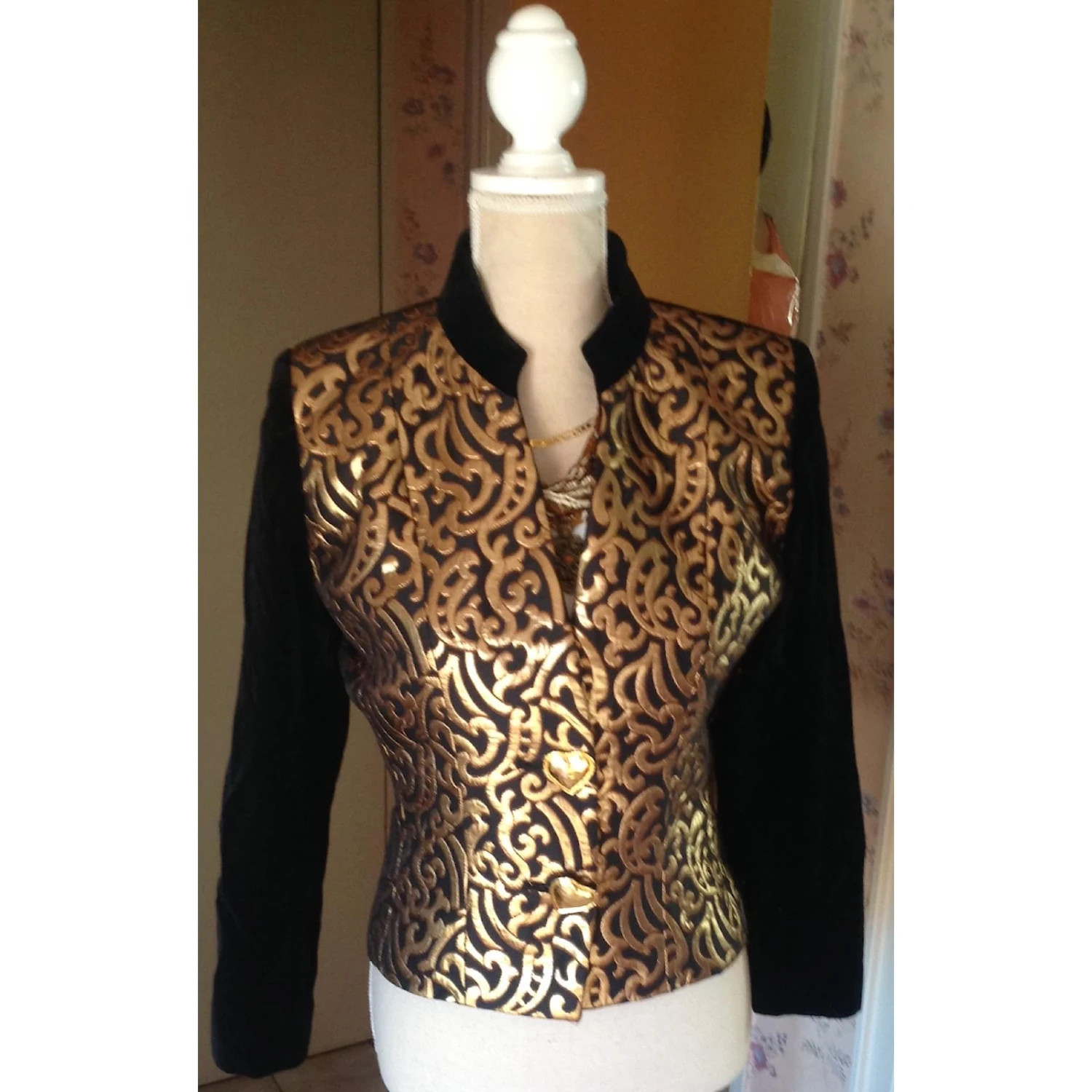 Inégalable blazer noir et morif dorés de chez yves saint laurent – taille 40. Un bijou de blazer fermant avec deux sublimes boutons en forme de cœur des jolis bijoux, élément vital pour yves saint laurent. Une jolie coupe cintrée et épaulée lui donné une élégance et un chyc hors du commun. Le dos et les manches sont en velours noir lisse. Très peu servi, il a été rangé soigneusement. Très belle affaire à saisir