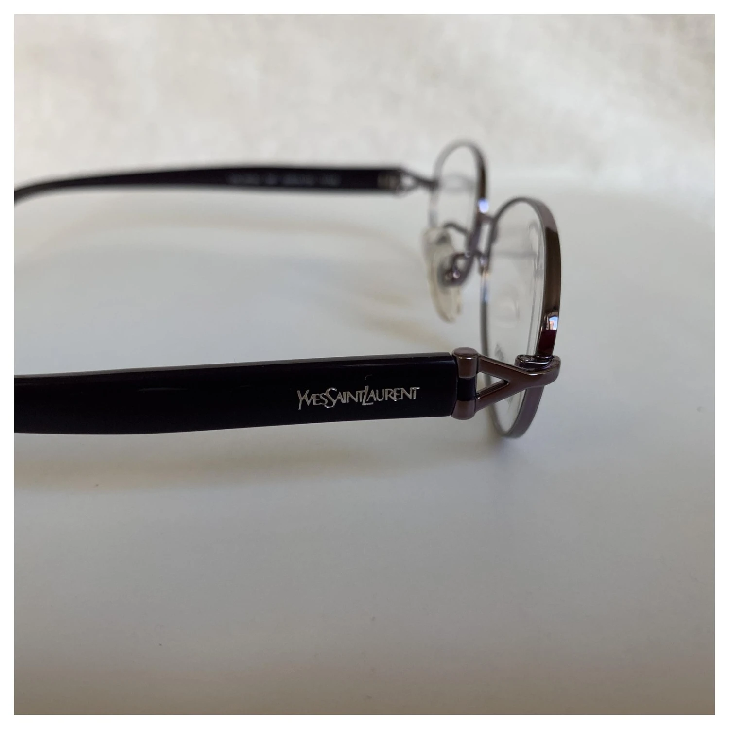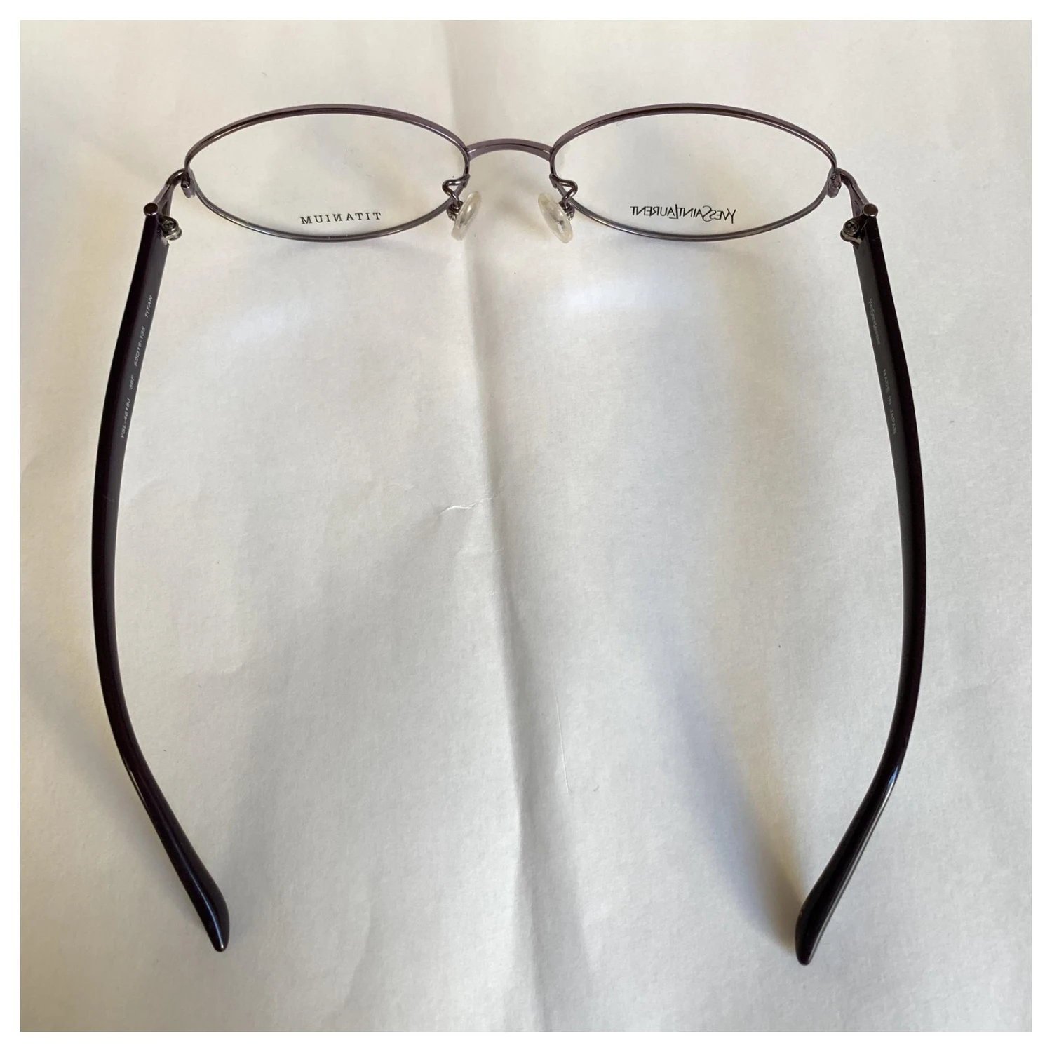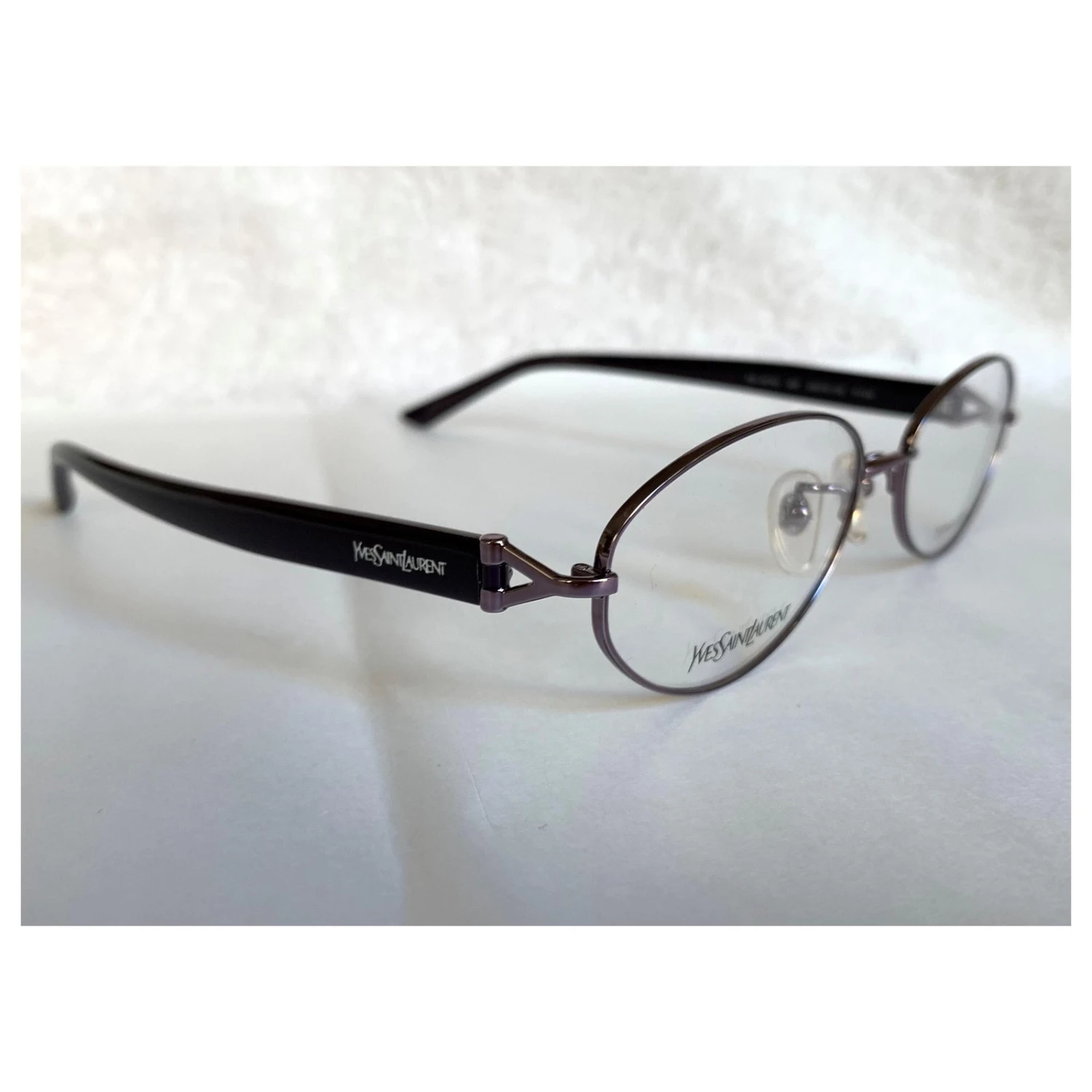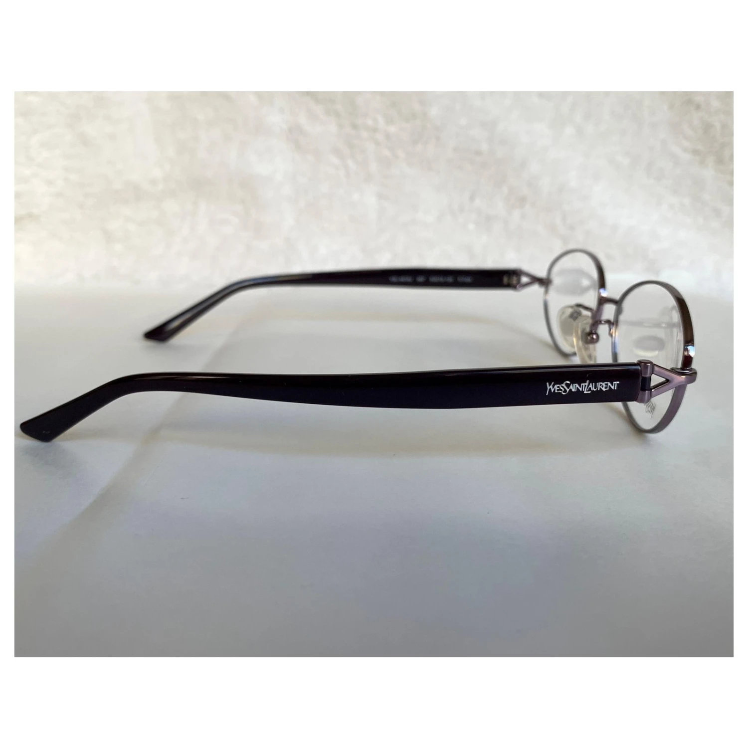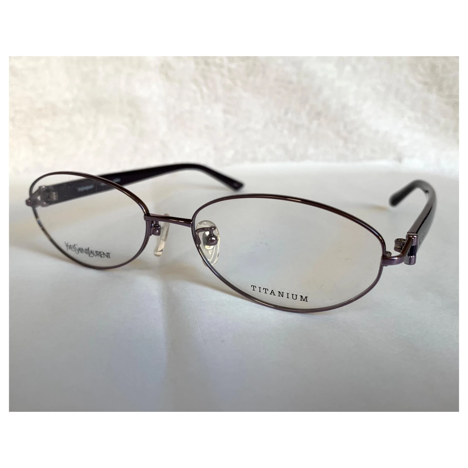 Montures chics et sophistiquées par Yves Saint Laurent. Barres en acétate violet foncé et construction en métal titane argenté foncé, Logo Y sur les côtés. Fabriqué au Japon. Largeur 13.5cm. Longueur des cadres 3cm, Largeur 5.5cm. size 53-16-135. Ne jamais utiliser ou porter, Dans d’excellentes conditions. Pas d’étui pas d’emballage.