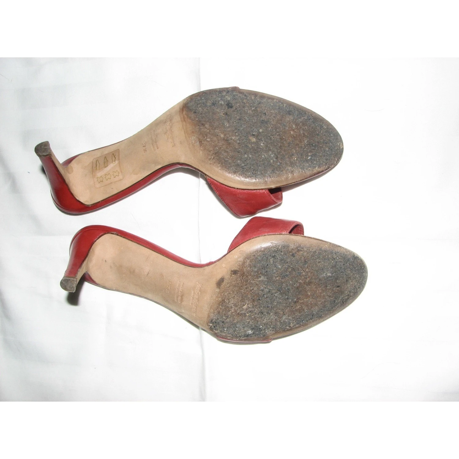 Gorgeous vintage Yves Saint Laurent Rive Gauche shoes in red leather, déclarations magnifiques chaussures en très bon état avec le seul signe d’usure étant sur les semelles en cuir. Le talon aiguille de 8 cm les rend très agréables à porter mais reste très élégant