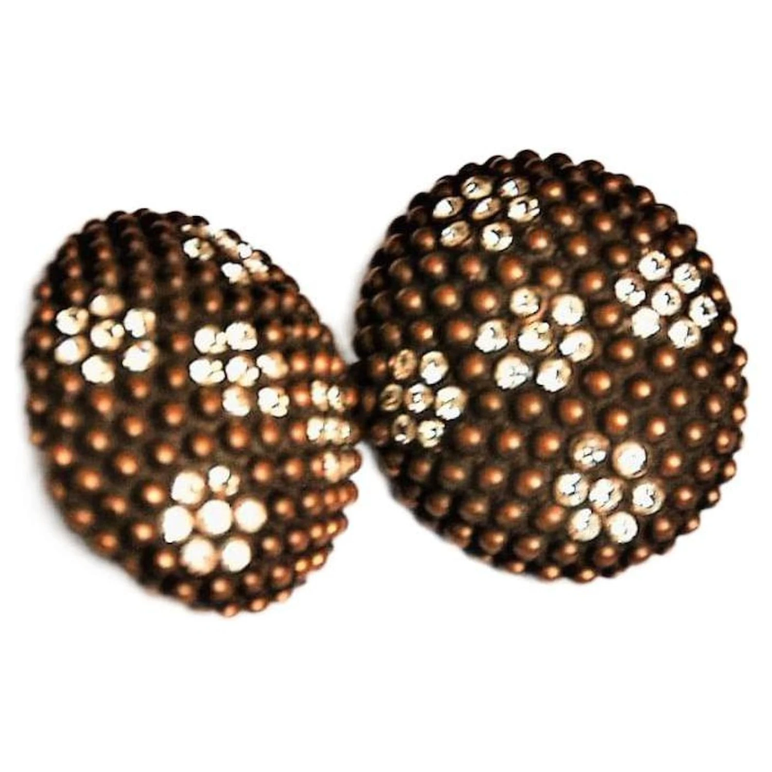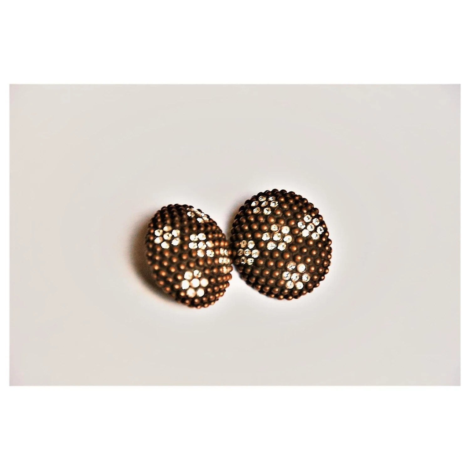 BO yves saint laurent ovale bombée gravée de petites boules dont certaines sont empierrées avec des strass cristal de chez SWAROVSKI. Taille 4,2X 3,4.§ Jamais portée