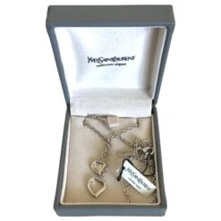 Très joli pendentif Yves Saint Laurent en argent neuf dans son écrin, longueur de chaine 42 cm