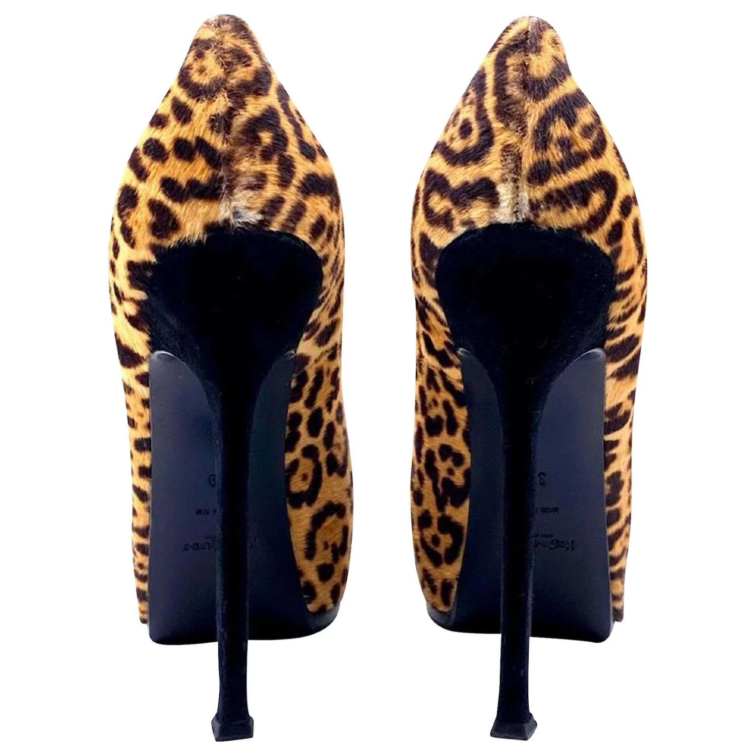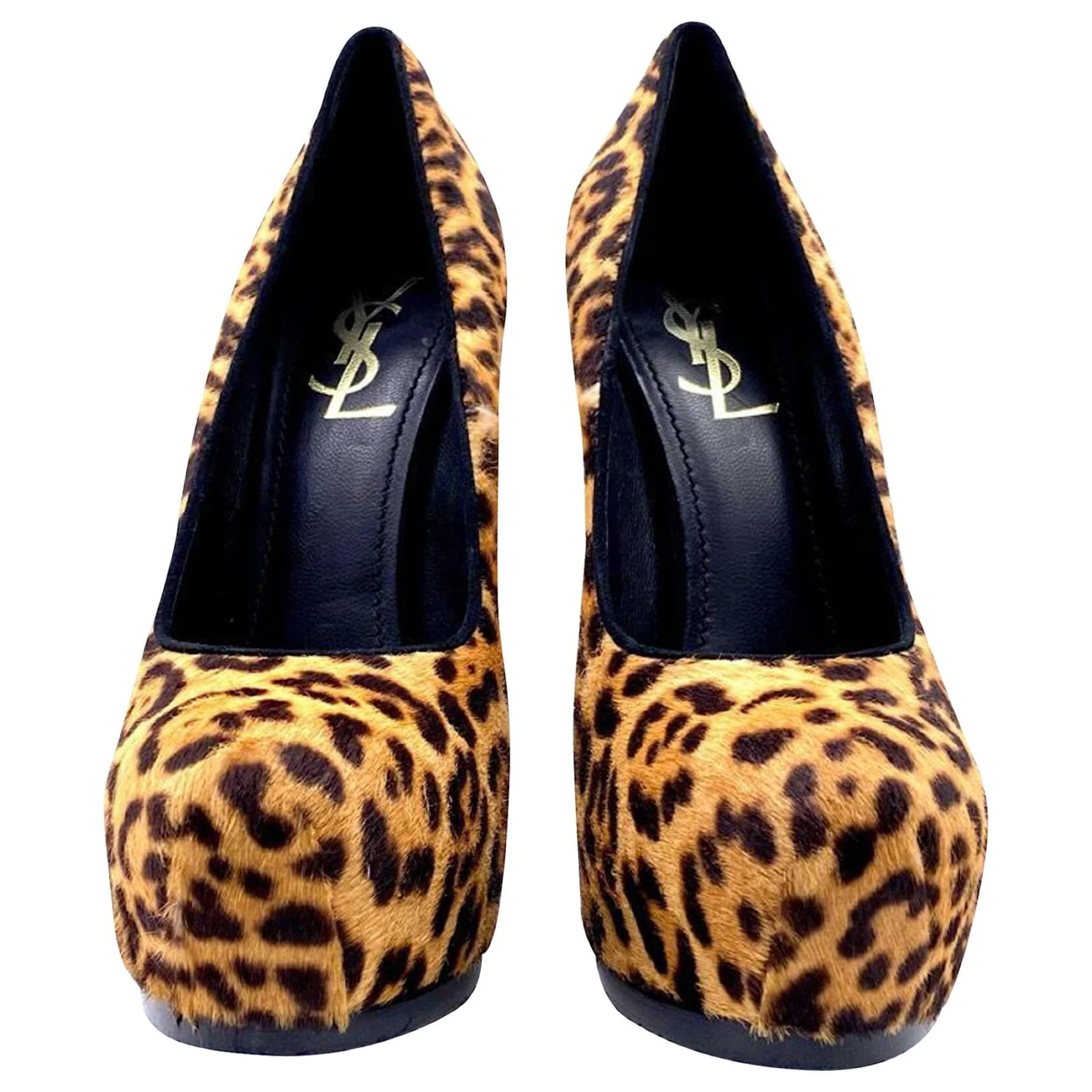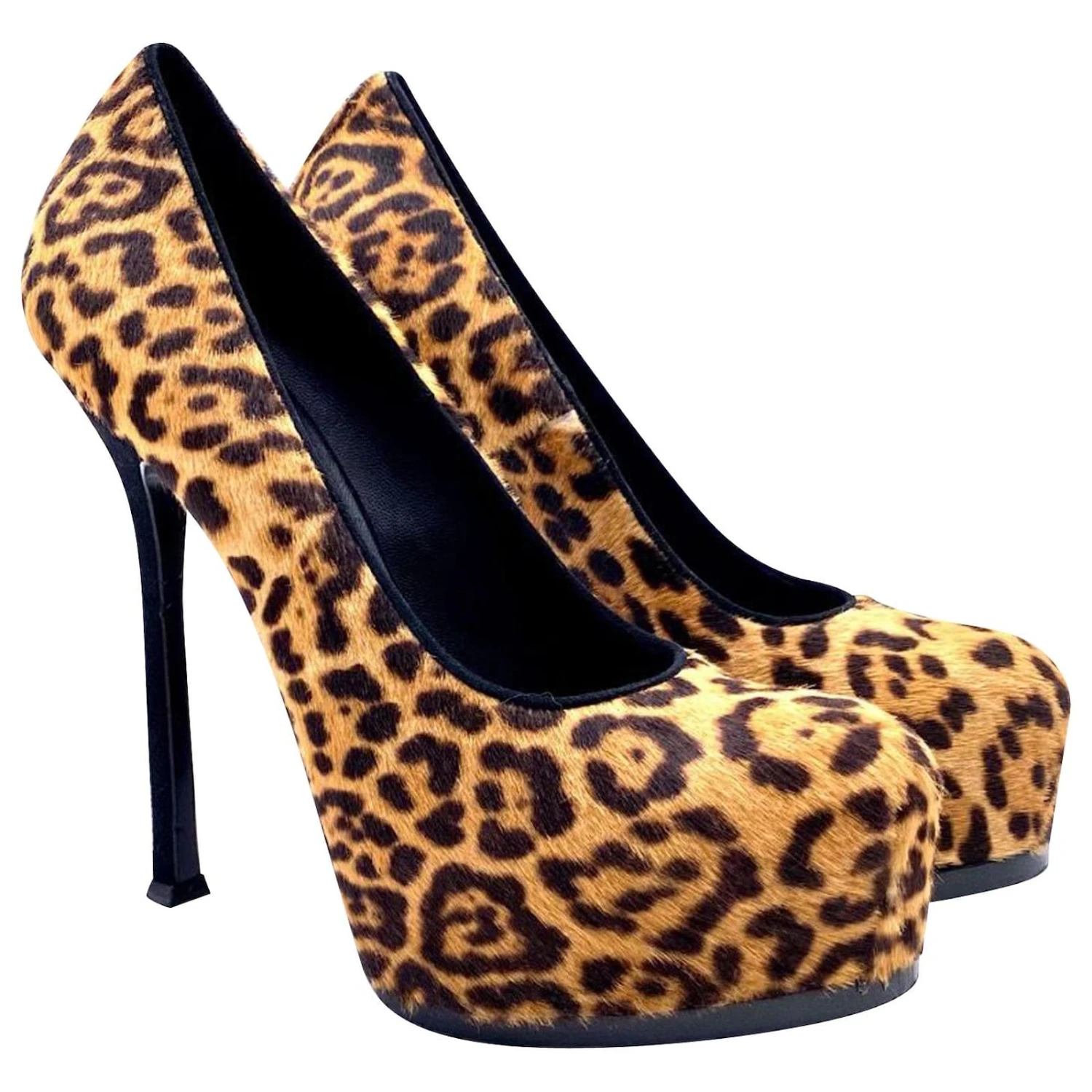 Yves Saint Laurent Saint Laurent Plateformes YSL Tribtoo en façon poulain imprimé léopard