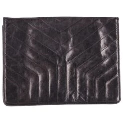Yves Saint Laurent Pochette Matelassé Y Chevron En Cuir Noir