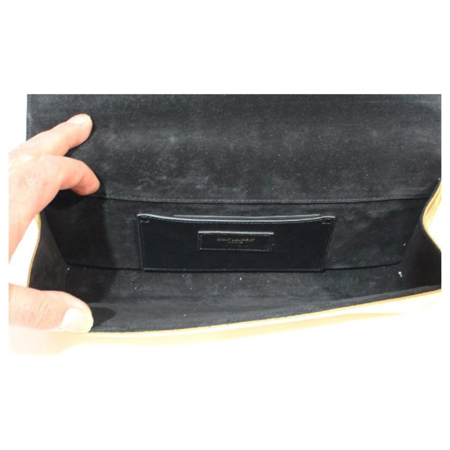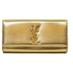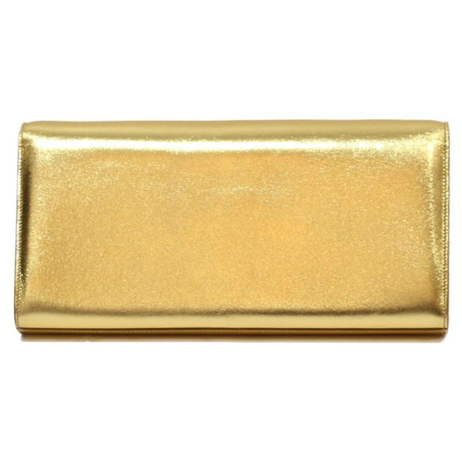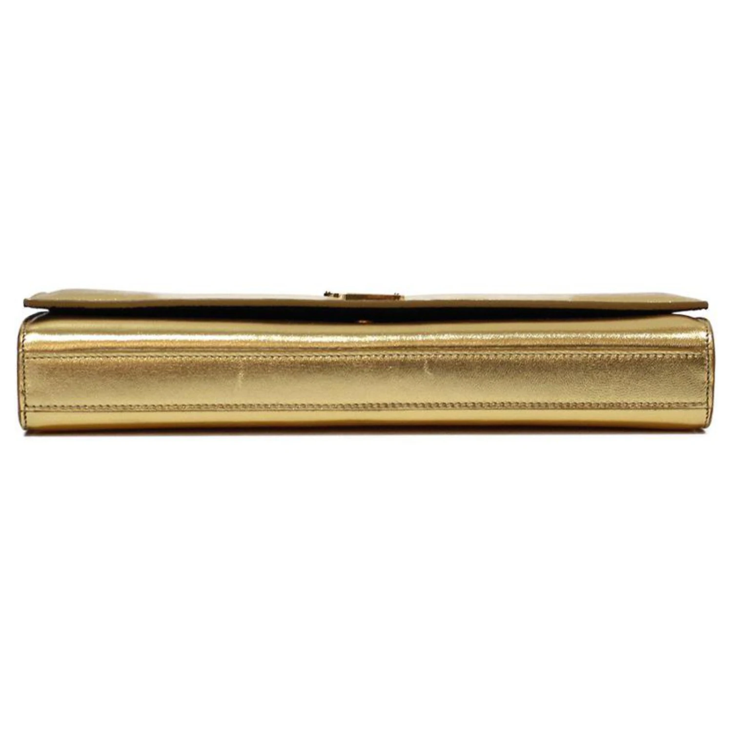 Yves Saint Laurent POCHETTE SAINT LAURENT EN CUIR DORE A RABAT FERMOIR YSL DORE INTERIEUR DAIM NOIR Doré