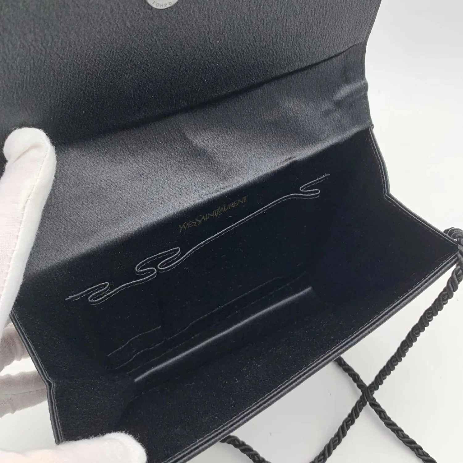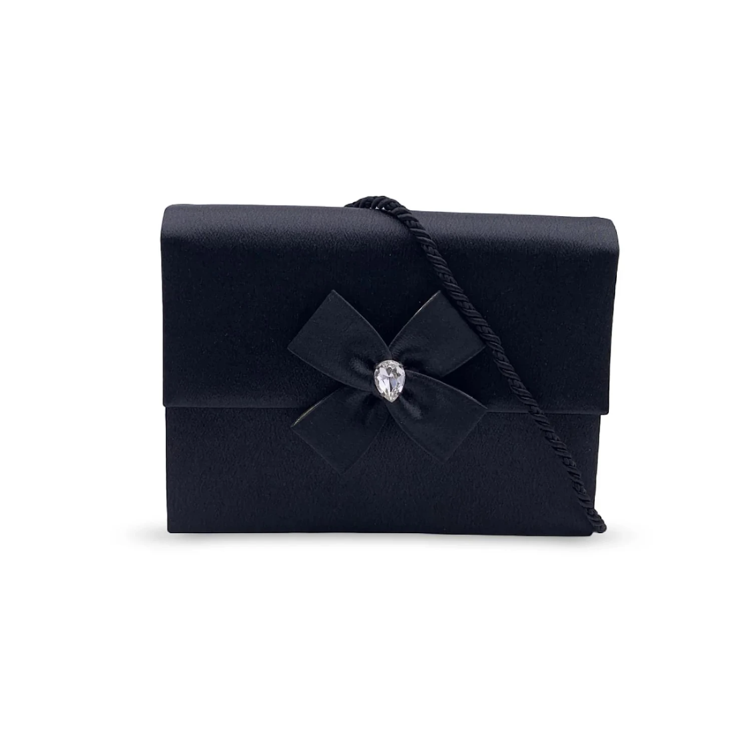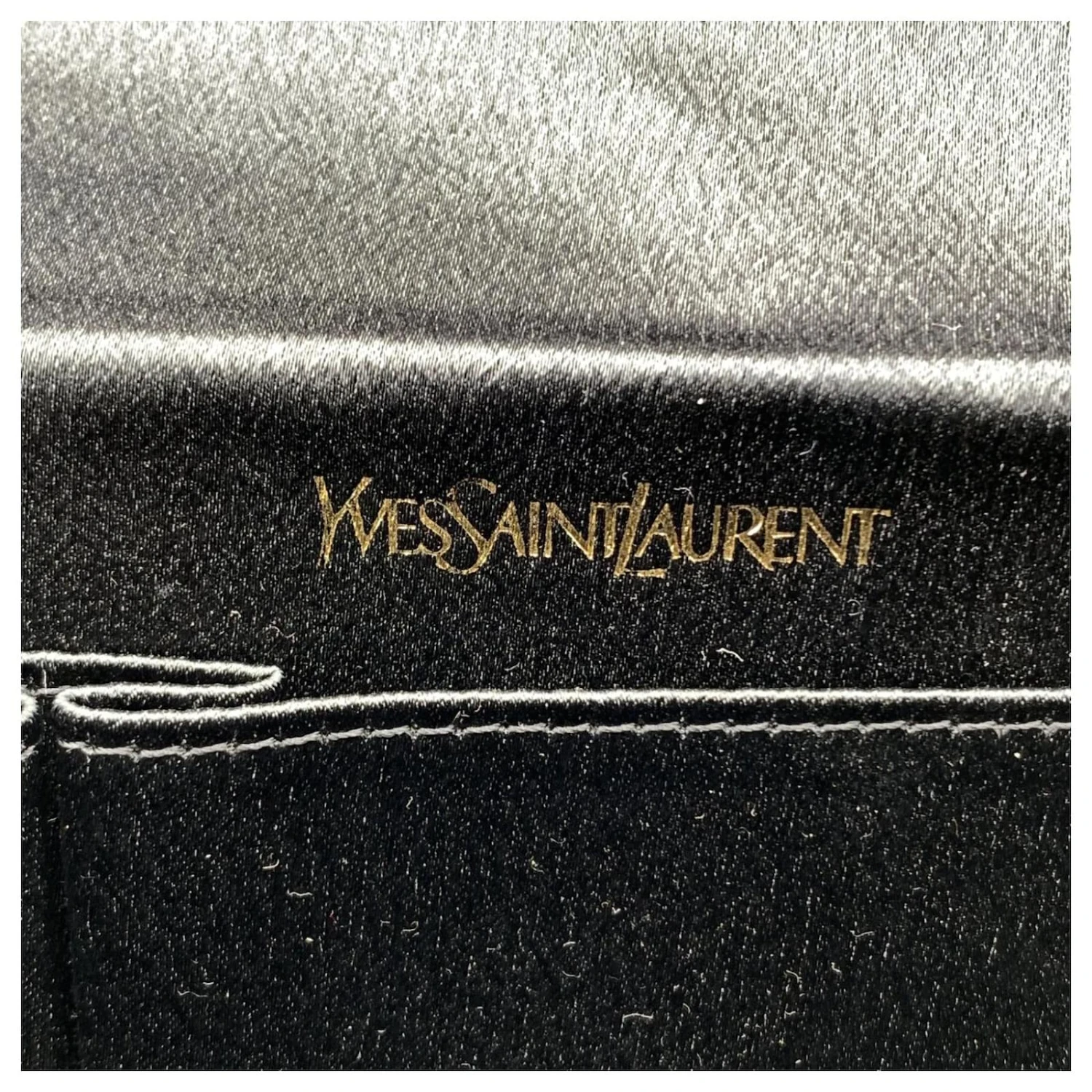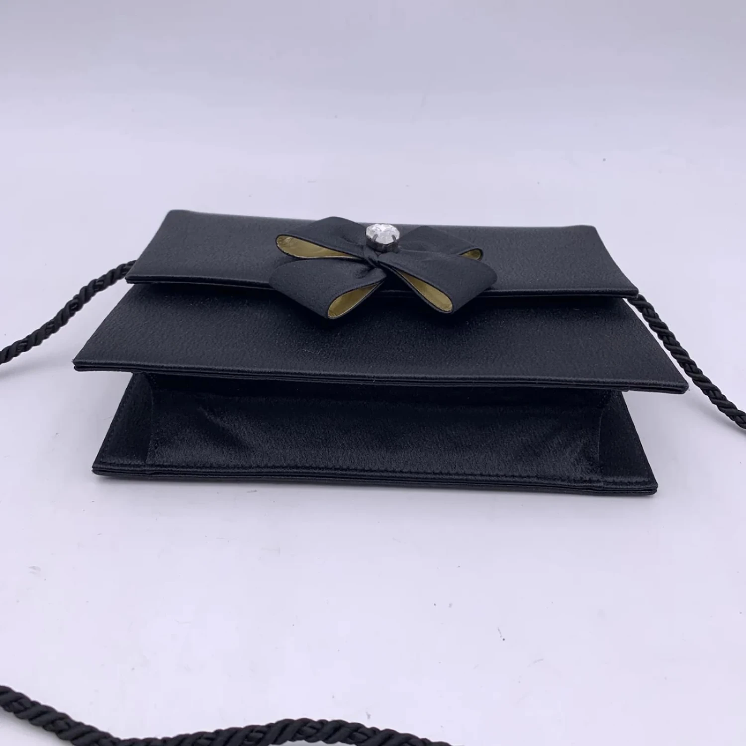 Yves Saint Laurent Pochette Vintage En Satin Noir Avec Nœud Orné
