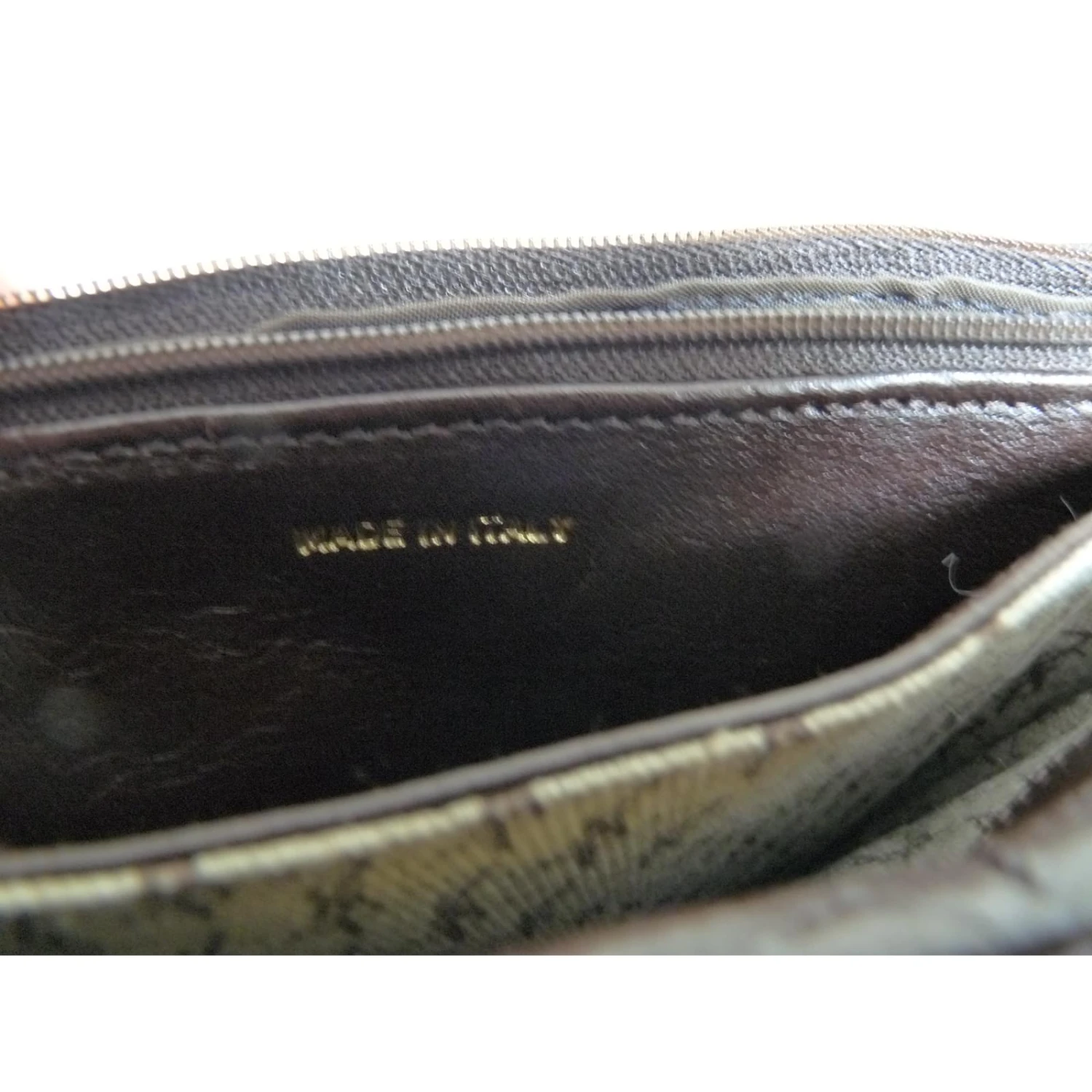 Pochette en cuir de chèvre ( cuir de qualité) ,marron, tout en surpiqure. rabat avec pression aimantée. à l’intérieur, 2 poches compartiments doublées tissu monogramme, au centre de celles-ci une poche zippée en tissu marron. se porte à la main, pas de bandoulière. très bon état, intérieur très propre, à signaler cependant un trait infime (devant,en bas, à droite du sac, ne se voit ,pour ainsi dire ,pas vraiment) et également une marque en forme de carré (sur le bas, à droite du rabat, mais là encore, il faut y regarder de très près) dimensions: 24cmx17.5cm