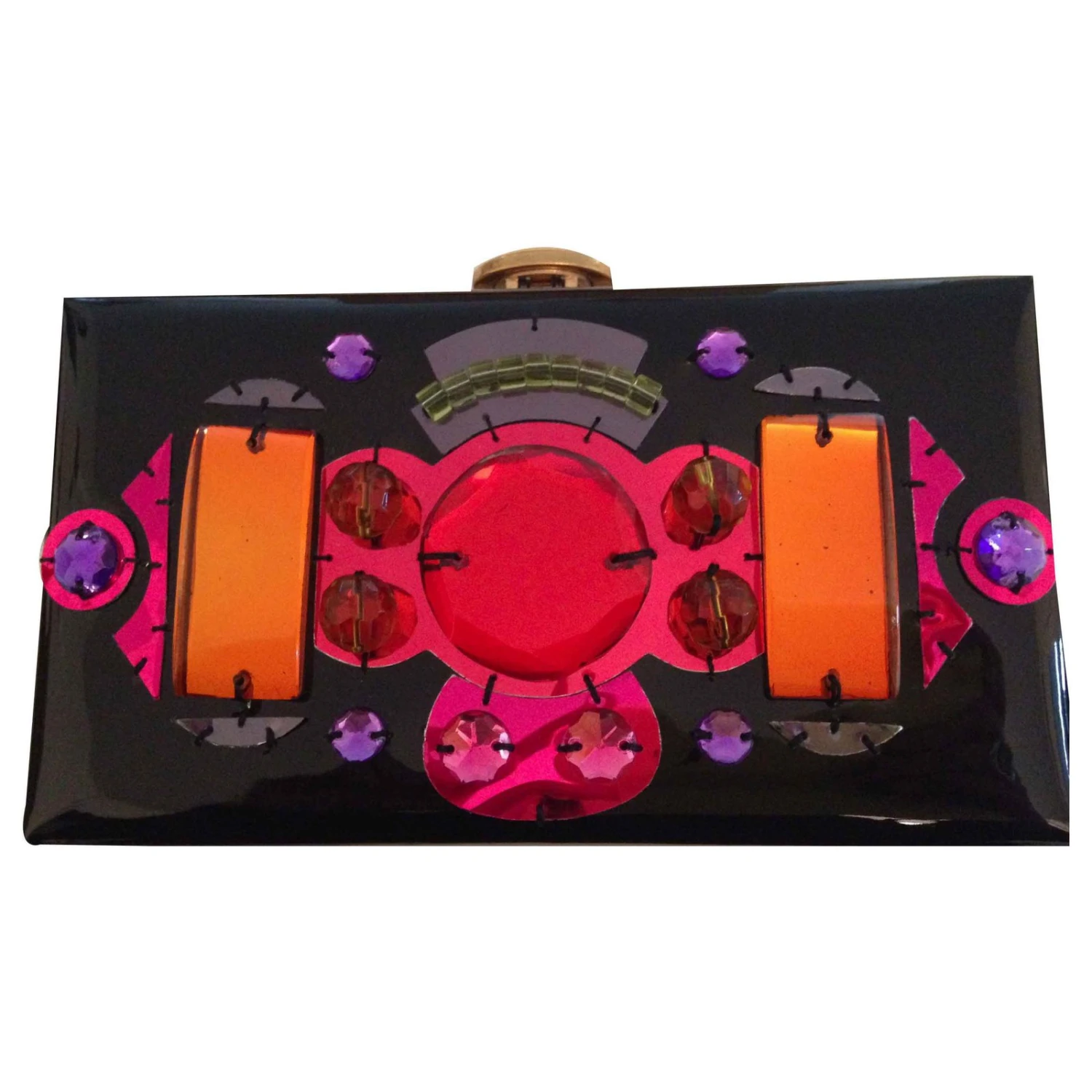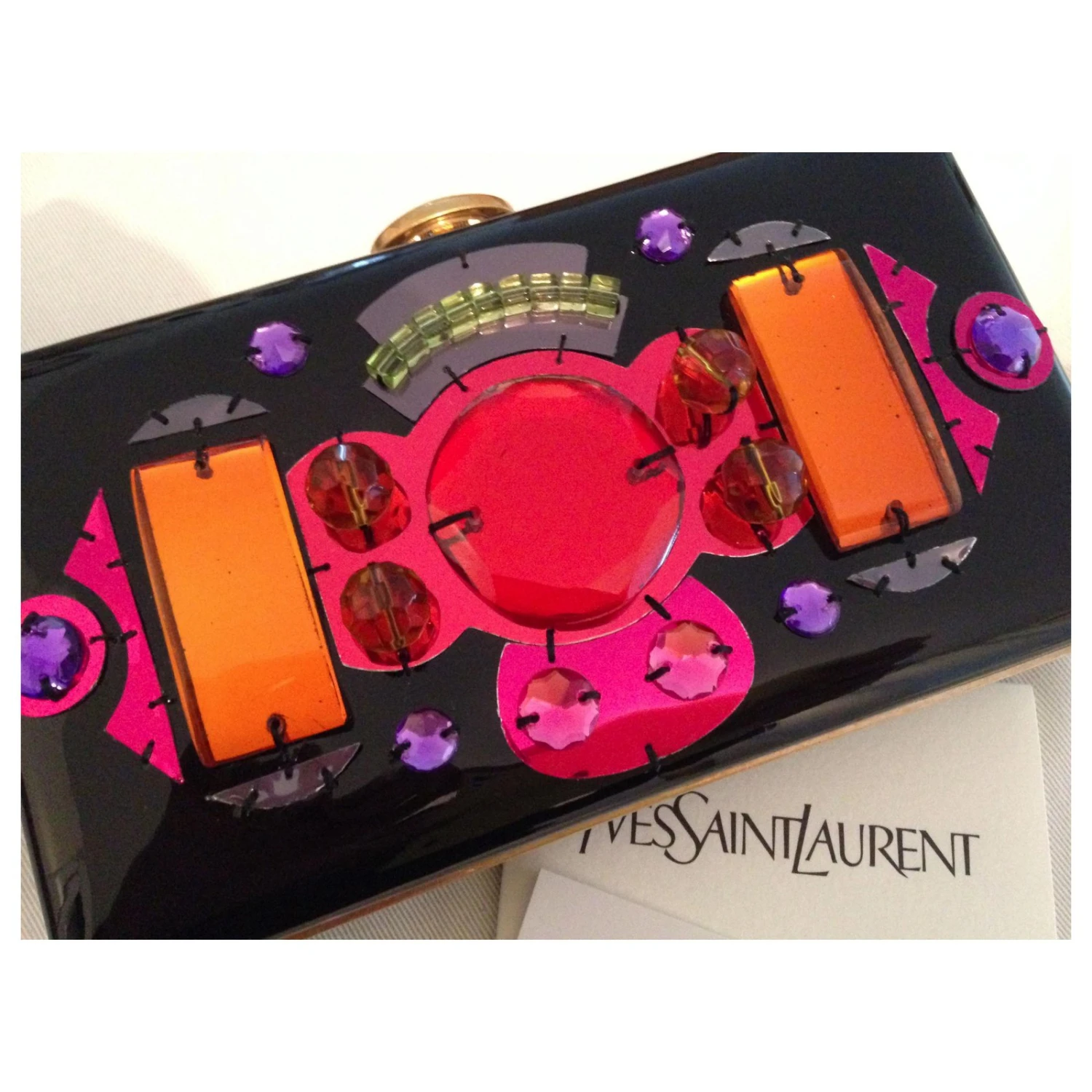 Sublime pochette en cuir vernis et strass multicolore