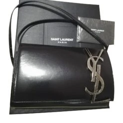 Wallet on chain Yves saint Laurent en cuir noir avec logo sur face avant. État neuf, jamais porté. Peut se porter en bandoulière sur le côté ou en pochette . Vendu avec ses papiers et sa boite