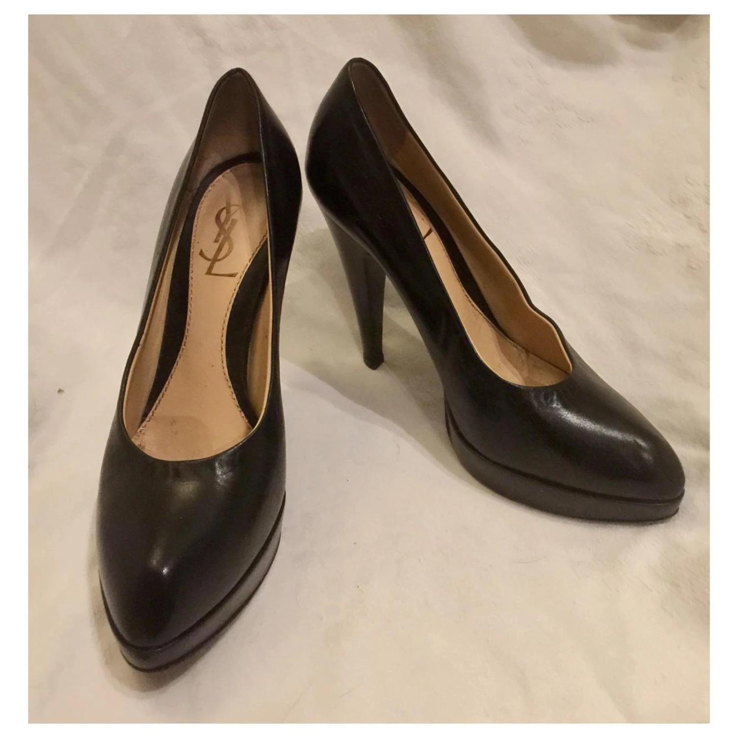 Superbes escarpins vintage YSL Rive Gauche en cuir noir, Doublé en cuir, La taille est la taille italienne, ils vont comme un Royaume-Uni généreux 4, petits signes d’usure comme des éraflures mineures qui ne sont pas visibles lorsque la chaussure est portée et qui pourraient toujours être facilement recouvertes de cirage.