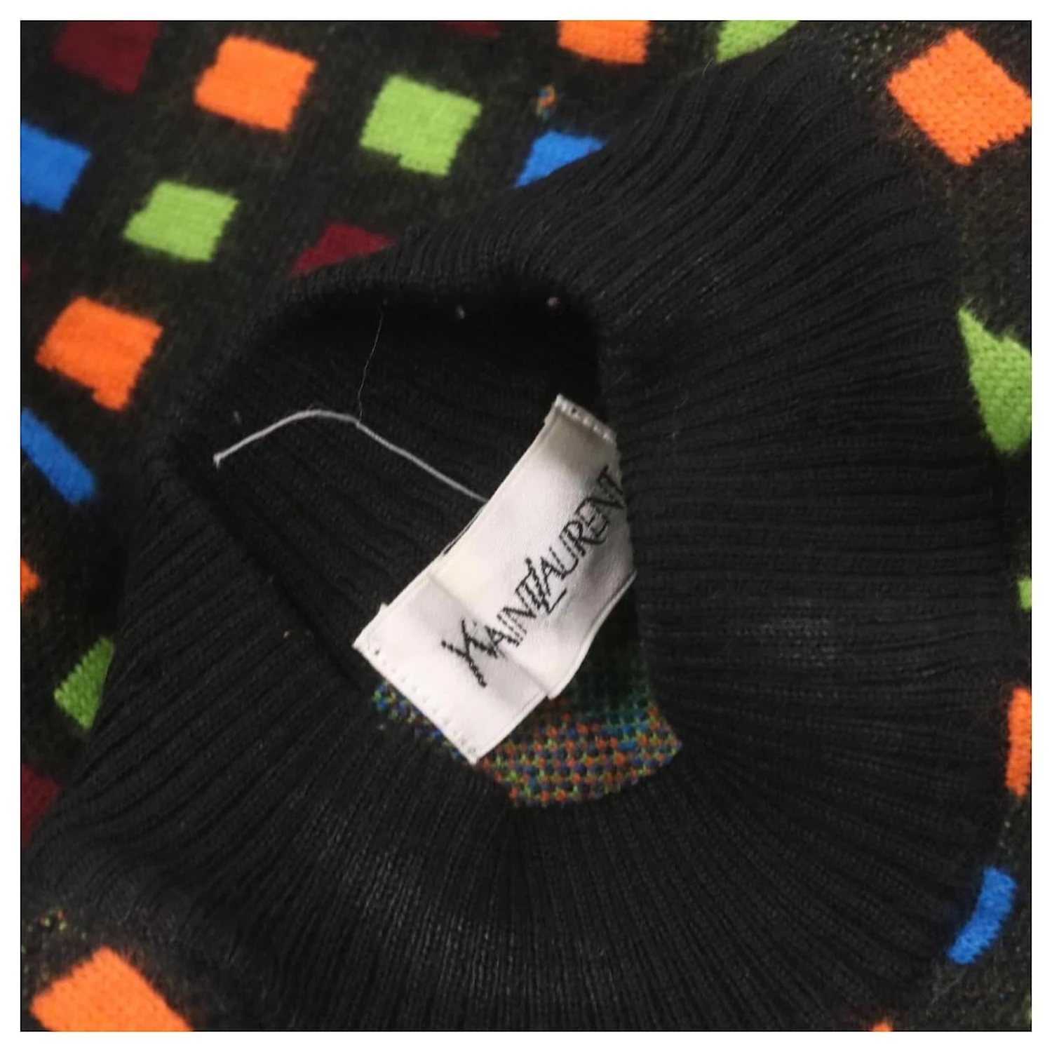 YVES SAINT LAURENT Pull Noir Laine Multicolore YSL Auth Ar4088