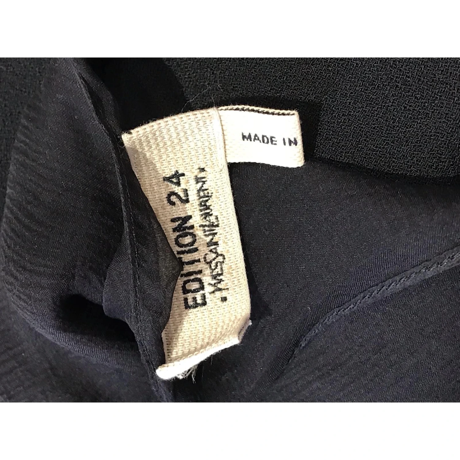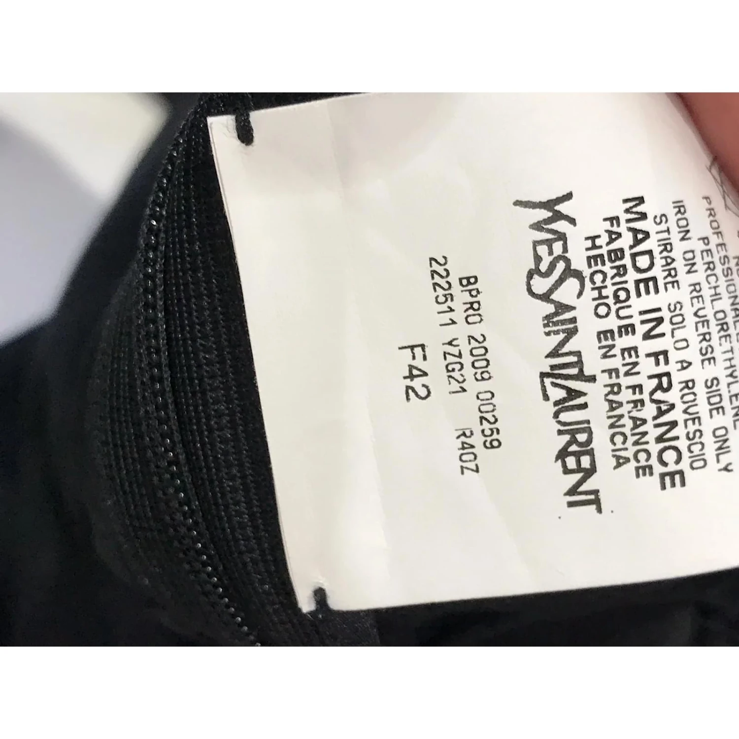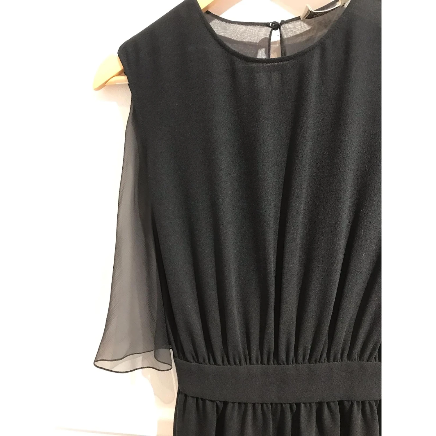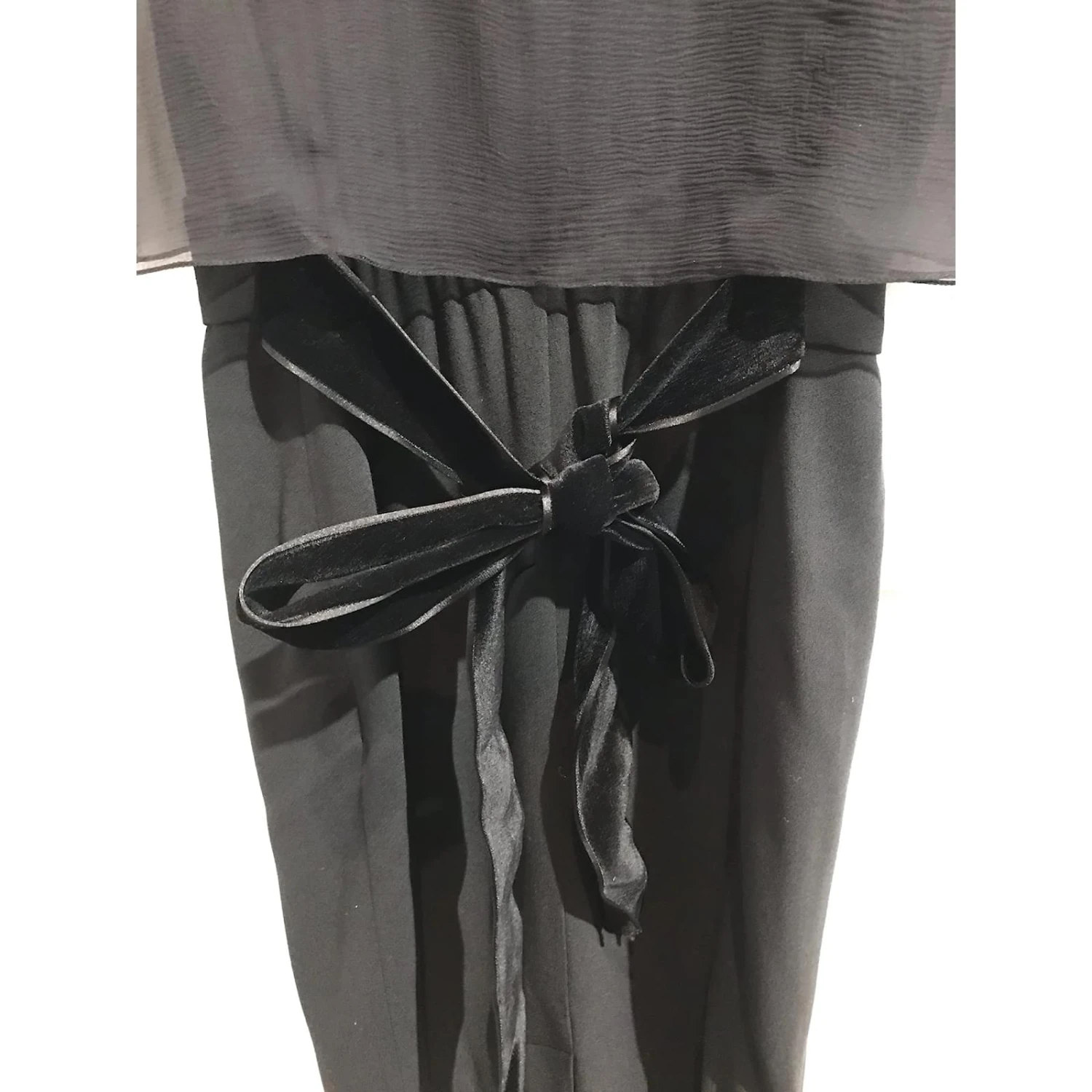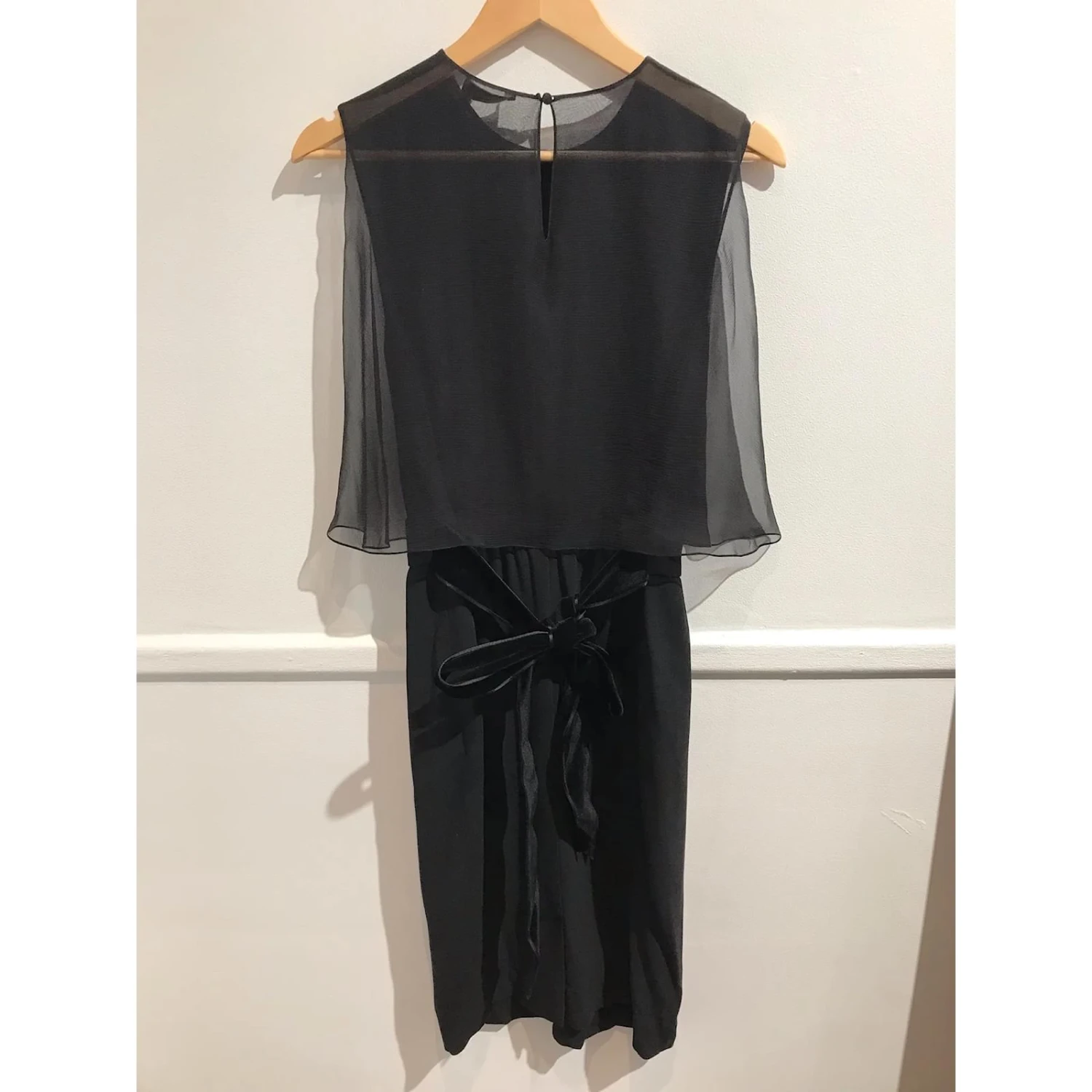 Robe Yves Saint Laurent, size 42. Robe noire mi-longue, ornĂ© d’un voile court au dos et d’un noeud en velours.