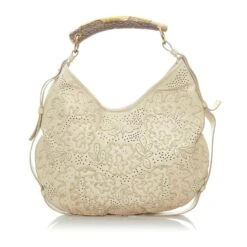 Yves Saint Laurent Sac à Bandoulière Fleuri Perforé En Cuir Beige