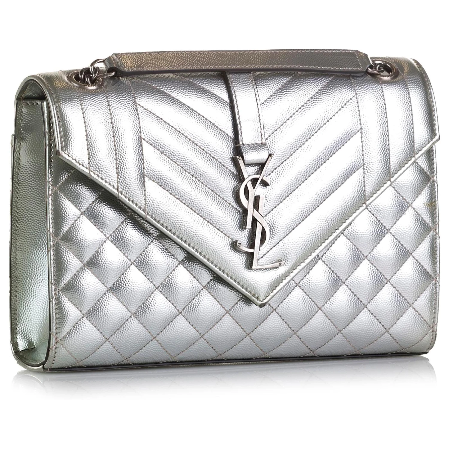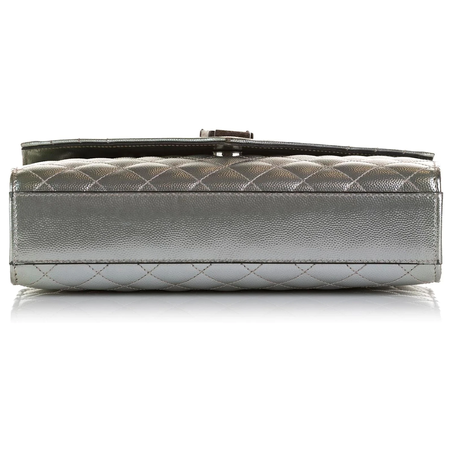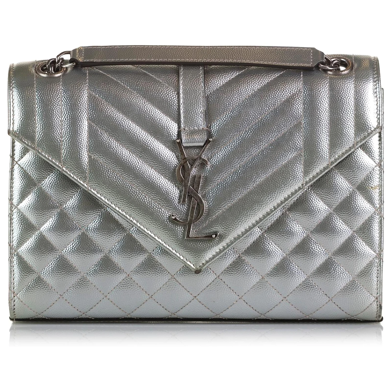 Le sac à chaîne Monogram Triquilt Envelope en cuir, une bandoulière à mailles, rabat sur le devant avec fermeture à bouton pression magnétique, une poche extérieure à glissière, et une poche intérieure. Il porte une cote B + condition.