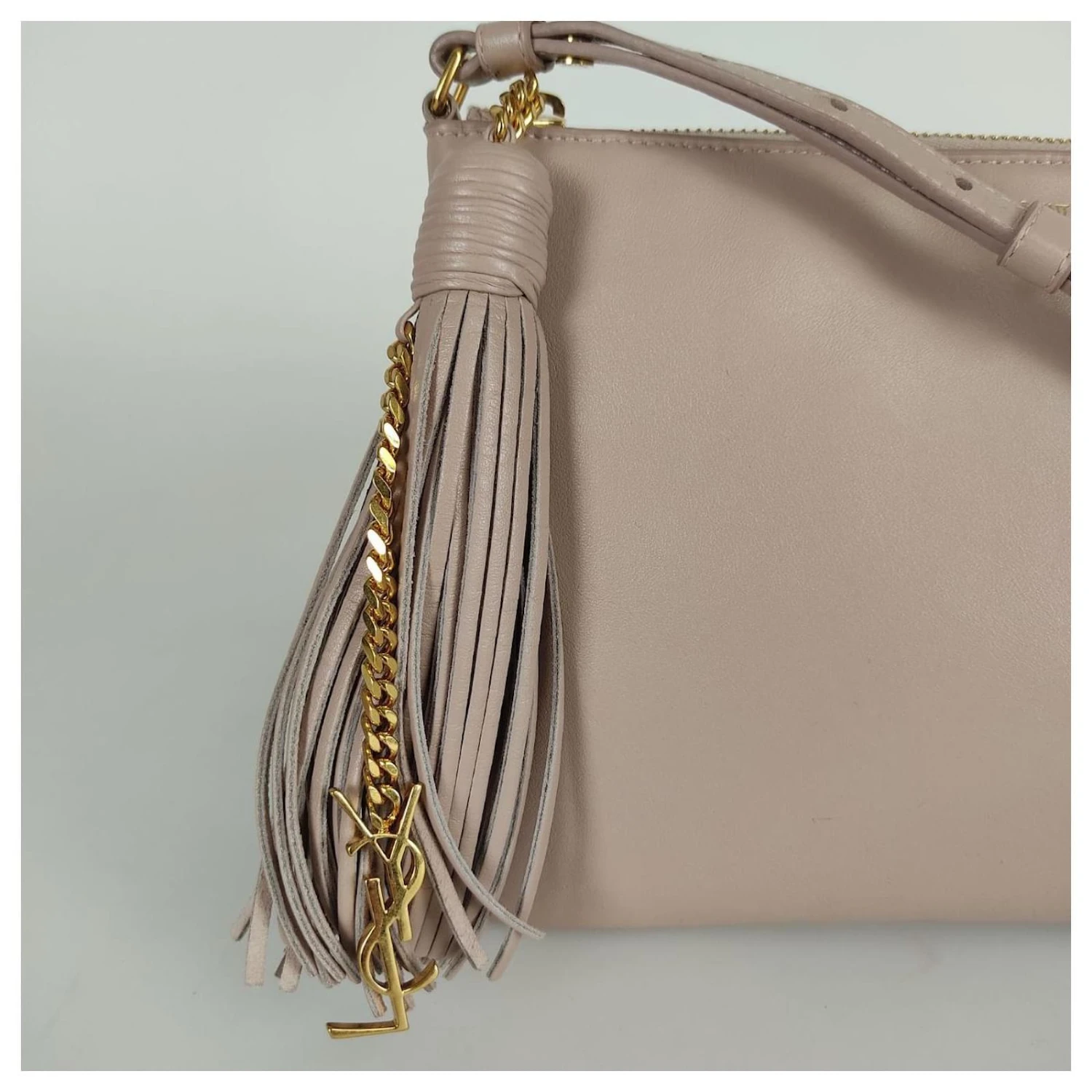sac porté épaule à logo caméra Saint Laurent.En cuir rose poudré avec empiècements dorés.Charme avec frange et logo.Intérieur en toile noire avec plusieurs poches.Il a été très peu utilisé et est en très bon état, avec des décolorations imperceptibles sur les coins et des rayures.COMPLET AVEC dustbag.Dimensions: W: 24cm – H : 17cmTous nos articles sont sélectionnés, soigneusement désinfectés et authentifiés par nos experts.