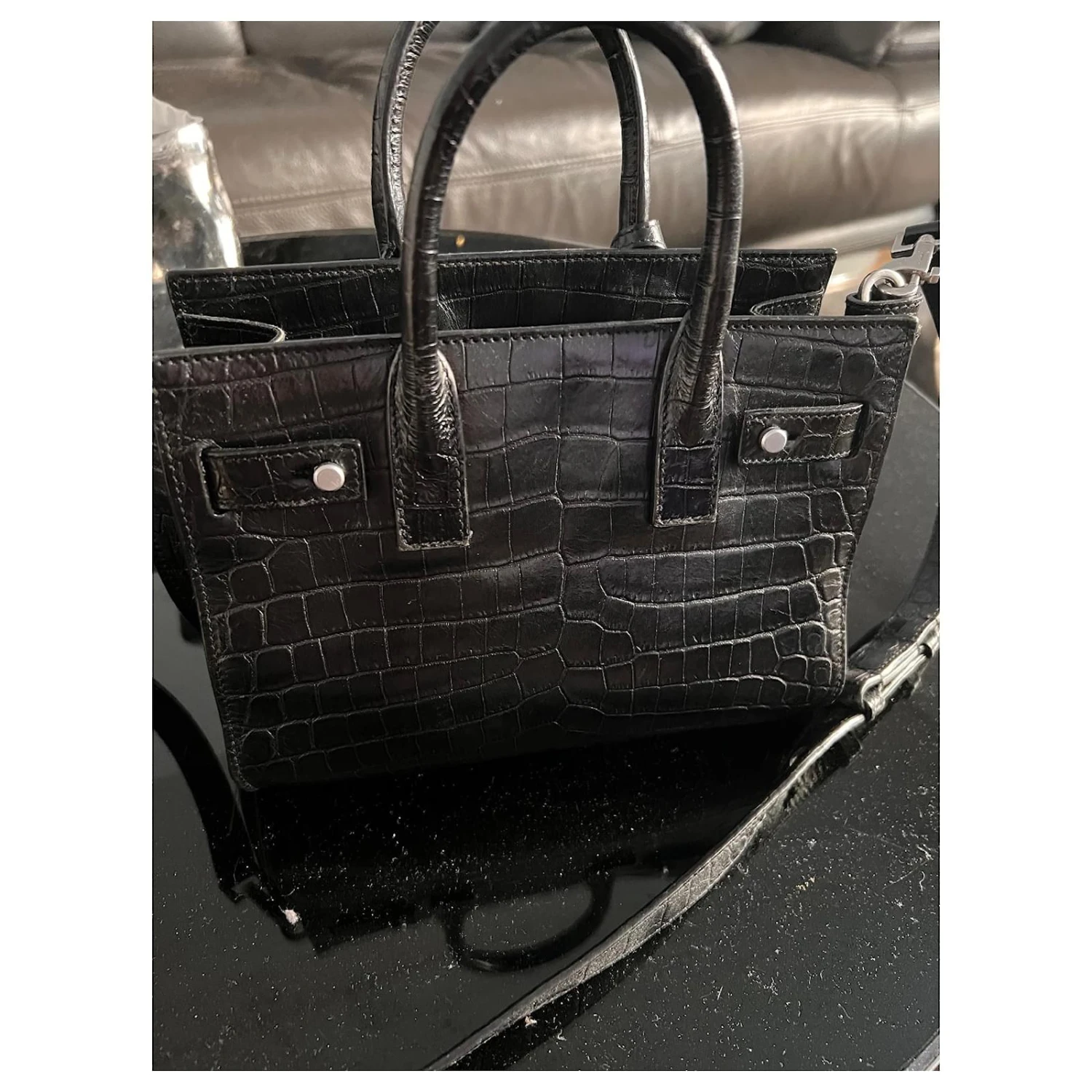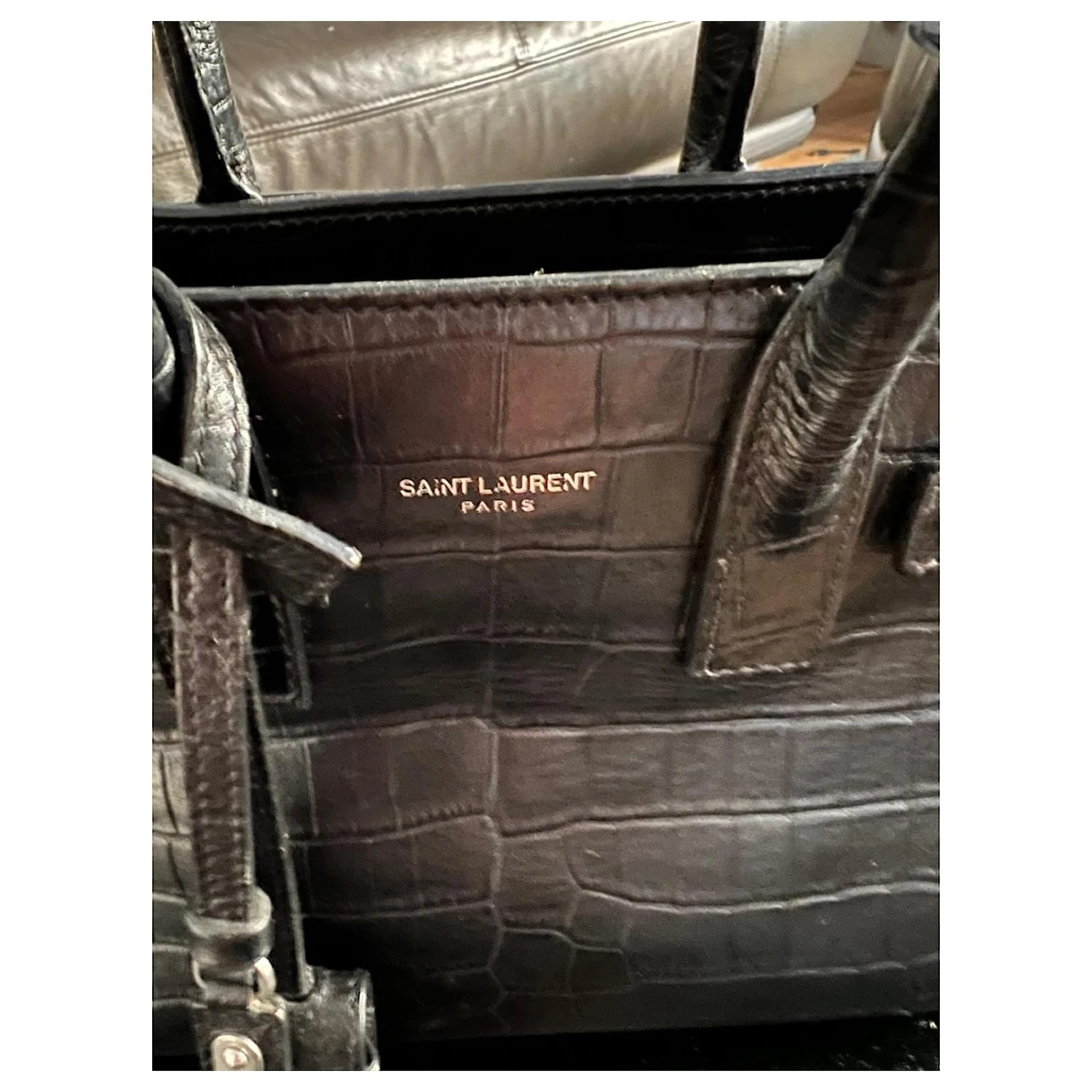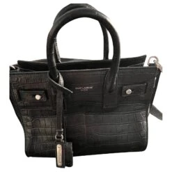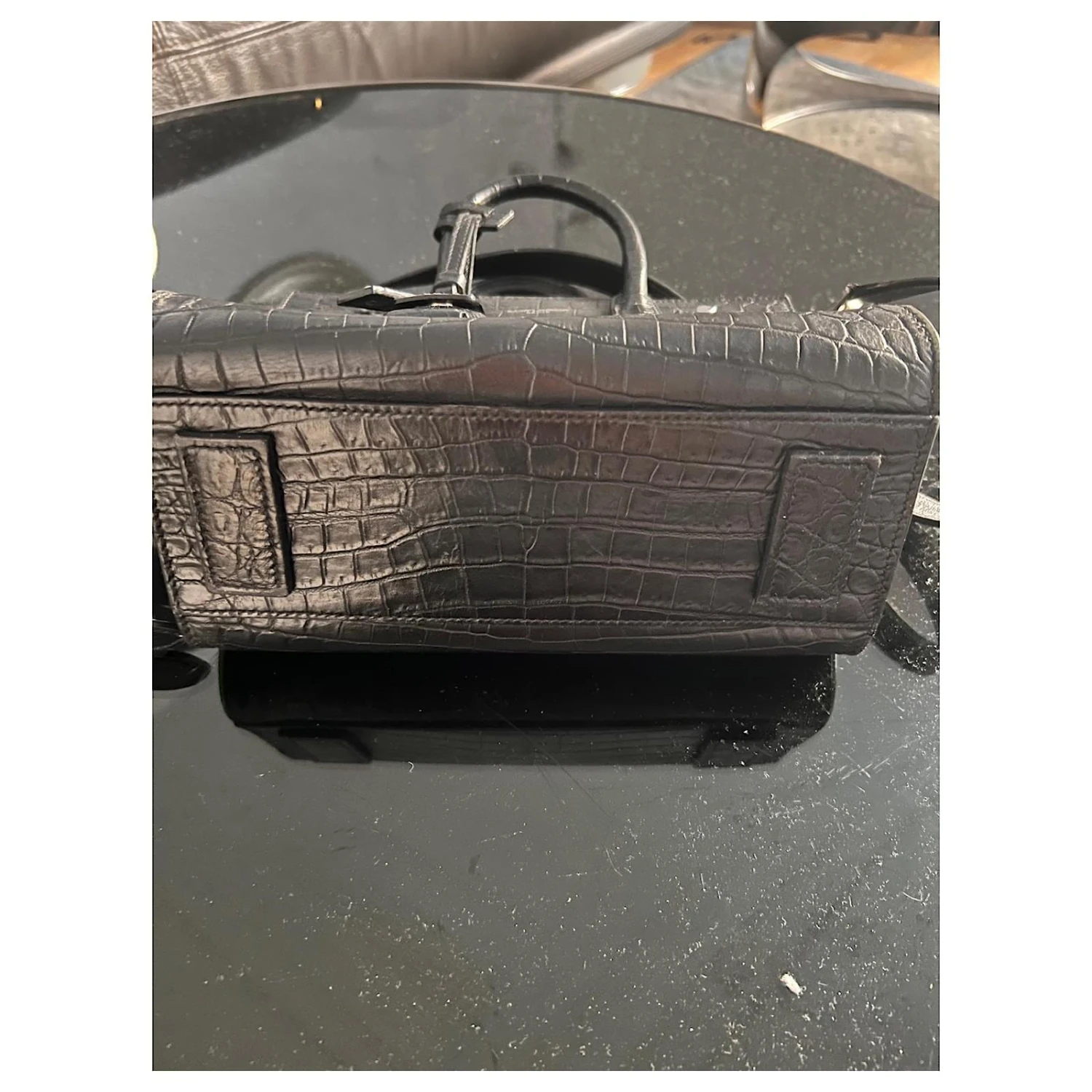 Sac de jour nano noir embosse crocodile avec attribut argent
