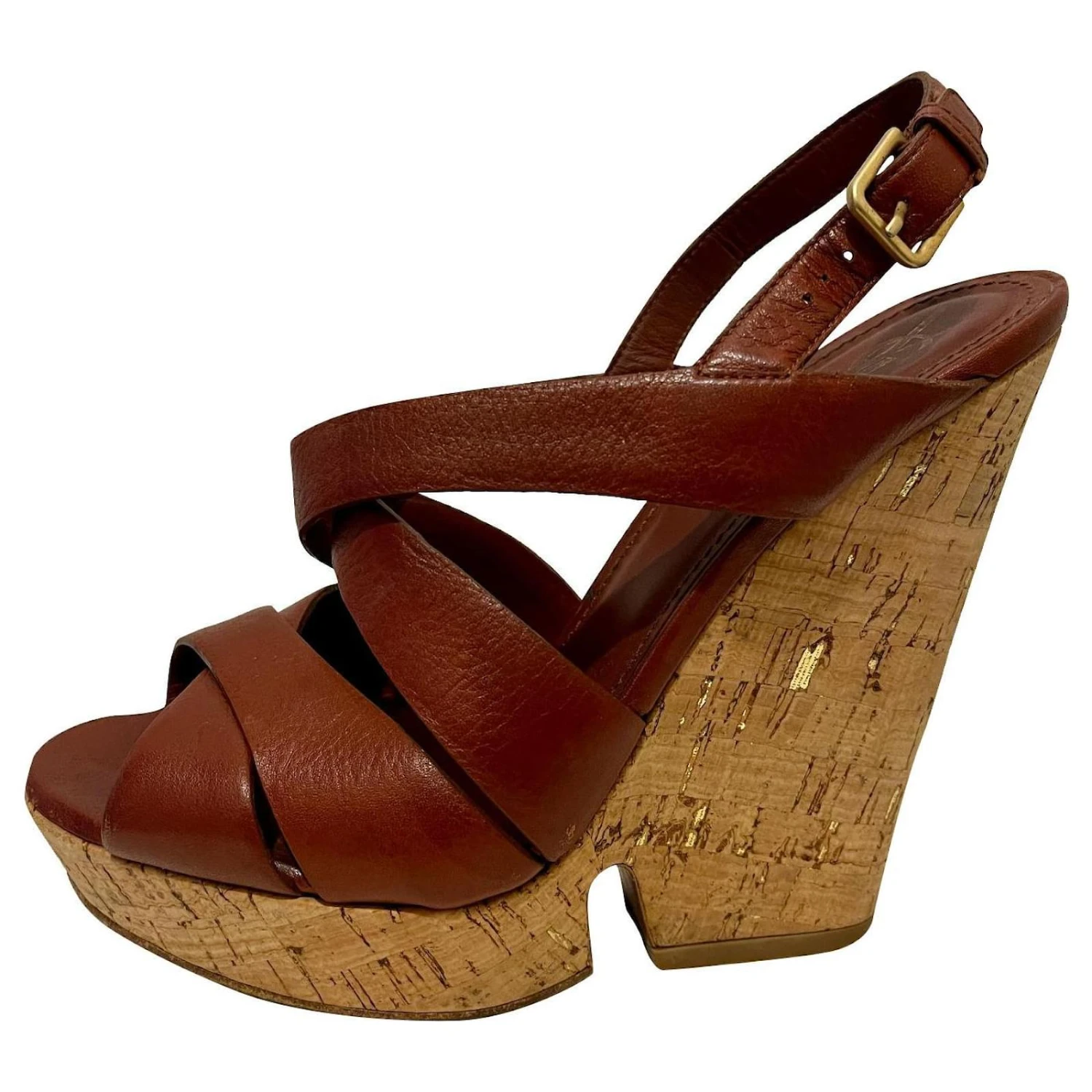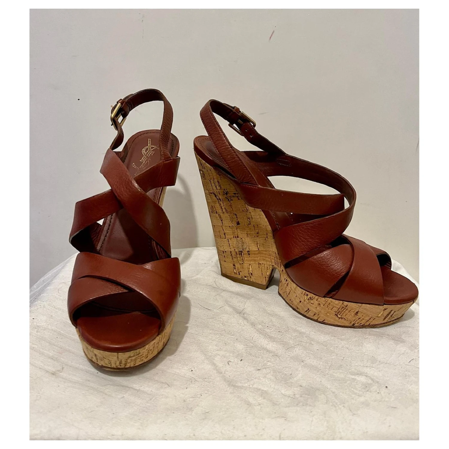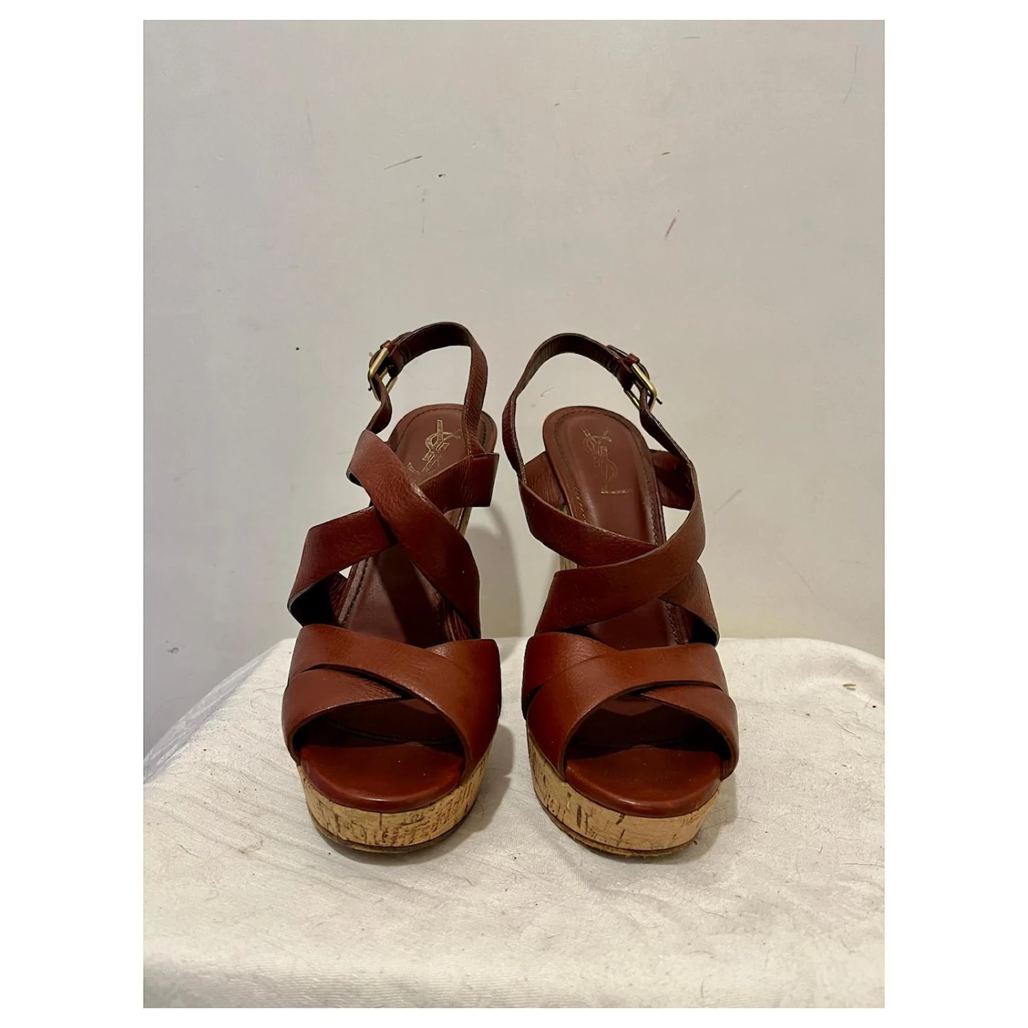 Yves Saint Laurent Sandales Compensées Vintage YSL De La Série Tribute Marron Chataigne