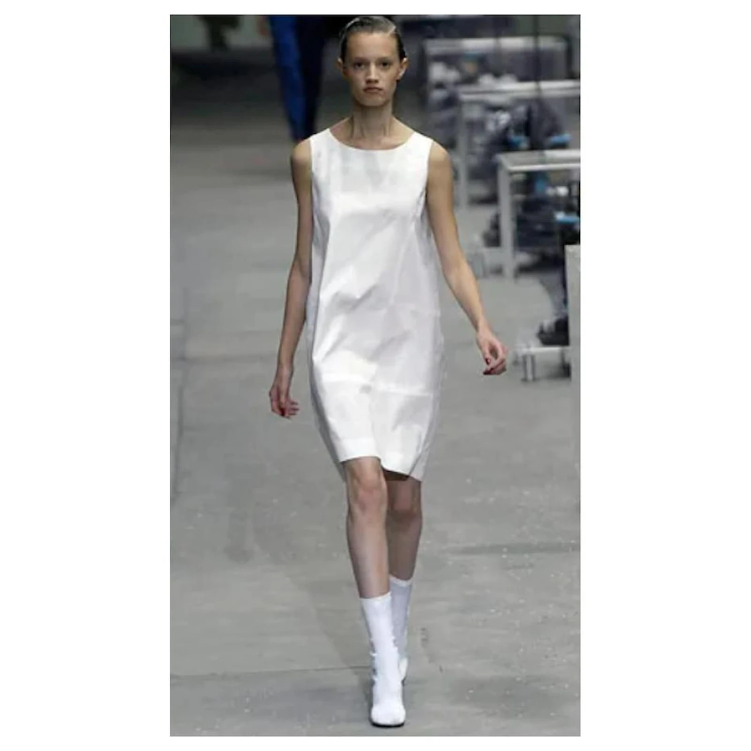 Superbe robe d’archive Yves Saint Laurent du printemps de Stefano Pilati 2008 Collection (Regardez 9 sur la piste). Porté une fois et vient d’être nettoyé à sec. En coton blanc doux avec un subtil tissage jacquard logo YSL, il a une coupe décontractée sans manches avec une forme cocon et un empiècement profond à l’ourlet. Non doublé avec coutures enveloppées françaises à l’intérieur. Size FR36/ROYAUME-UNI8.Mesures approximatives – buste 36”, hips 44″Et longueur 36.5”.