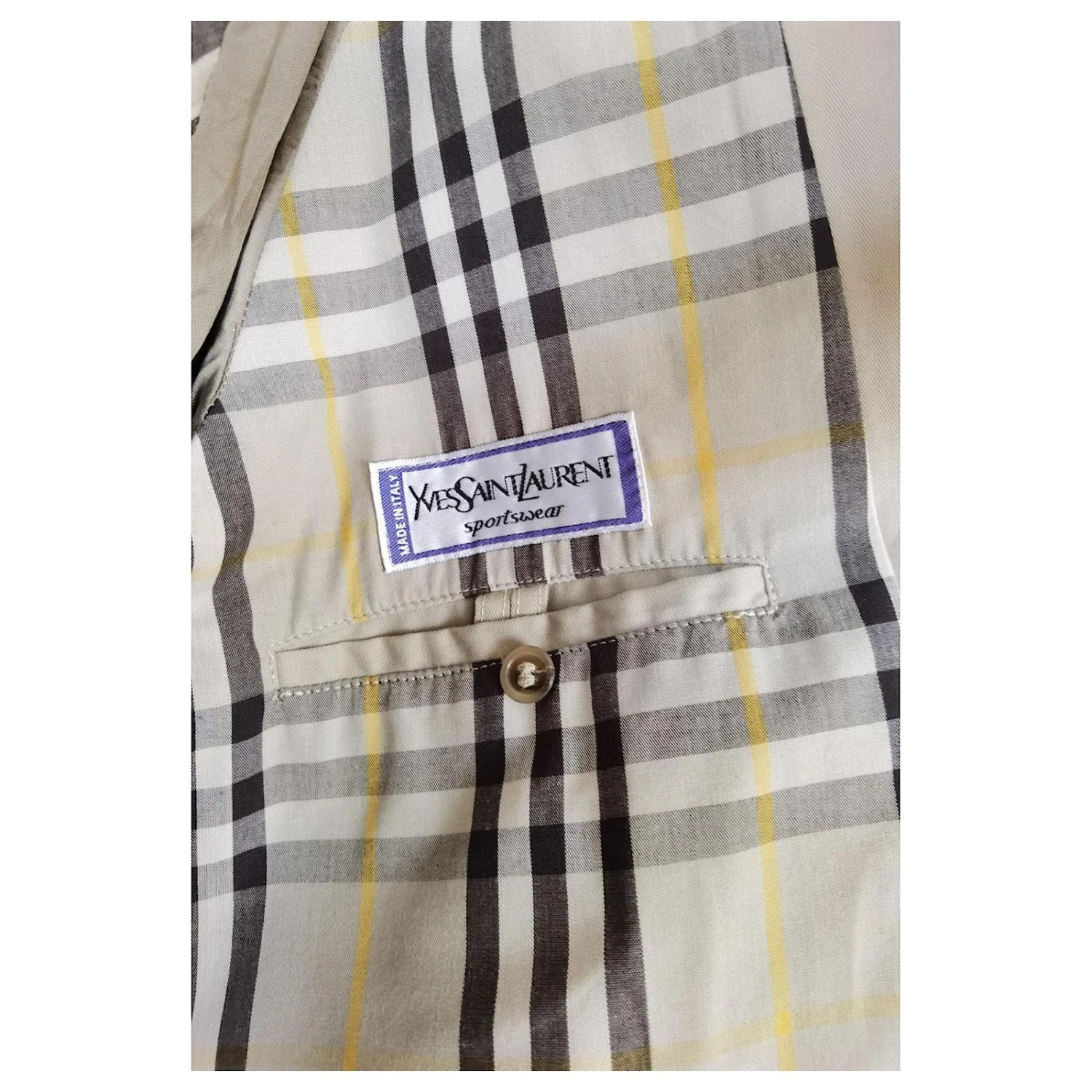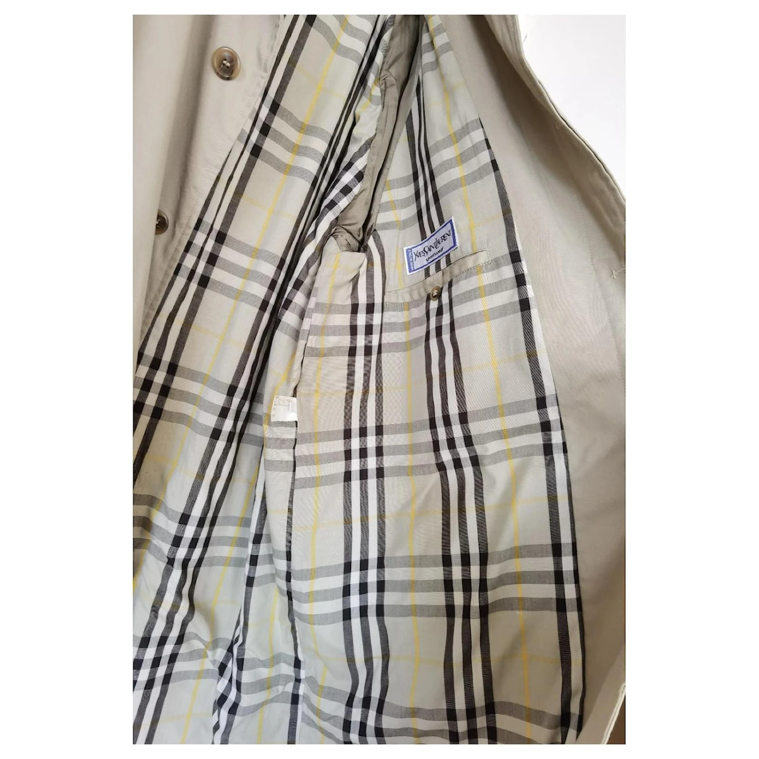 Trench Yves Saint Laurent. Made in Italy. Tissu Ă©pais. Il ne s’agit pas d’un impermĂ©able lĂ©ger type coupe vent. Il est intact et passĂ© au pressing. C’est une taille 52 italienne homme qui correspond Ă un 48 français, soit M homme. Trench mixte. Peut se porter oversize pour une femme. Il n’a pas de ceinture (jamais retrouvĂ©e). Je dirais que c’est une taille L-XL femmes qui pourrait ĂŞtre portĂ© en oversize. Tissu de super qualitĂ©, Ă©pais. Trench doublĂ©.