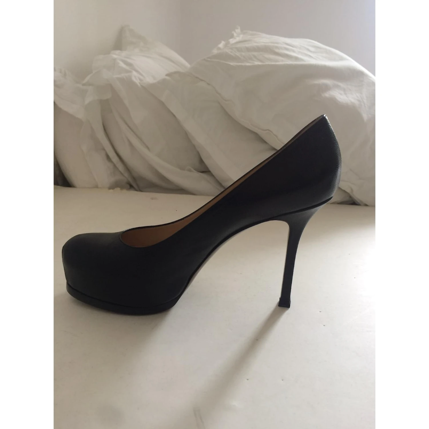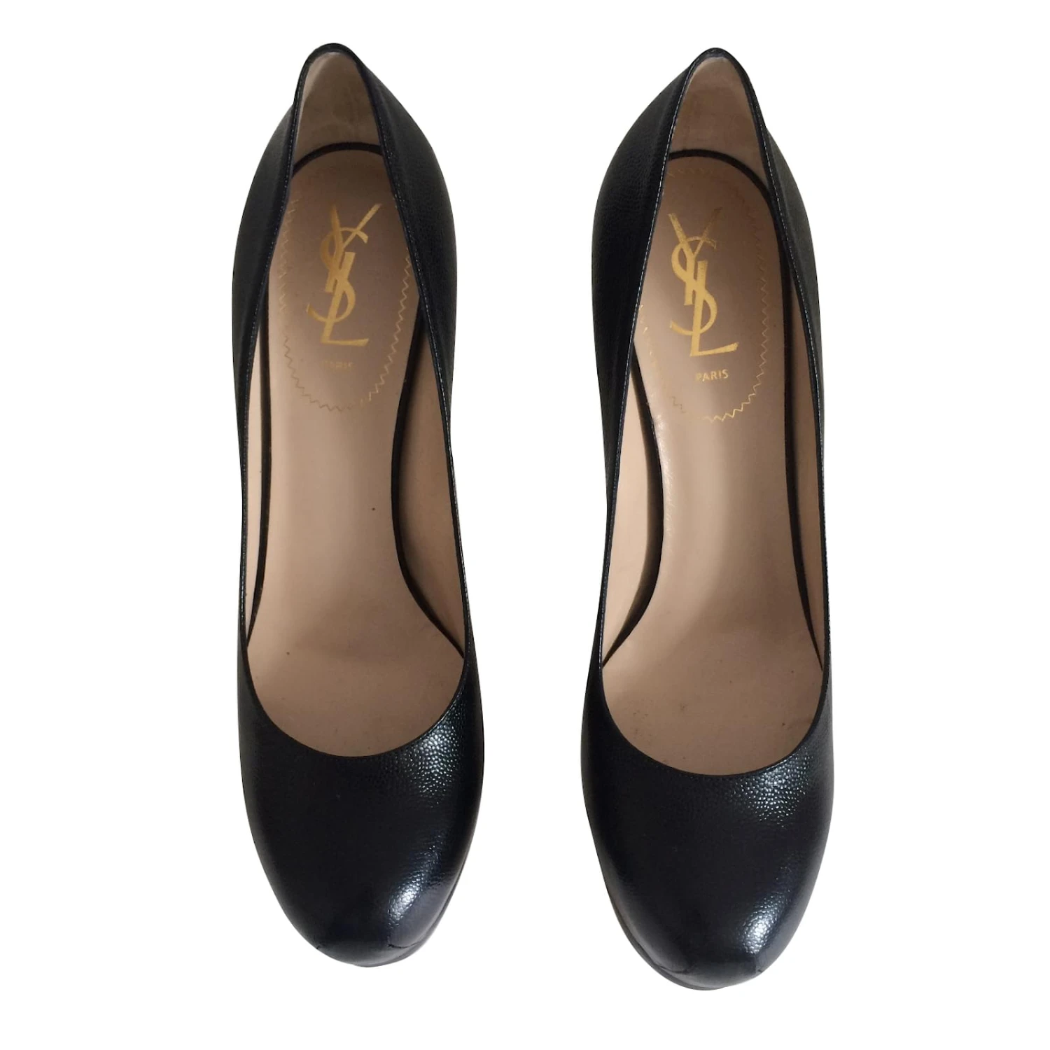 Escarpins noirs en cuir grainé. Portés 1 fois à l’intérieur. Talon 11 cm, plateforme 4 cm.Excellent état.