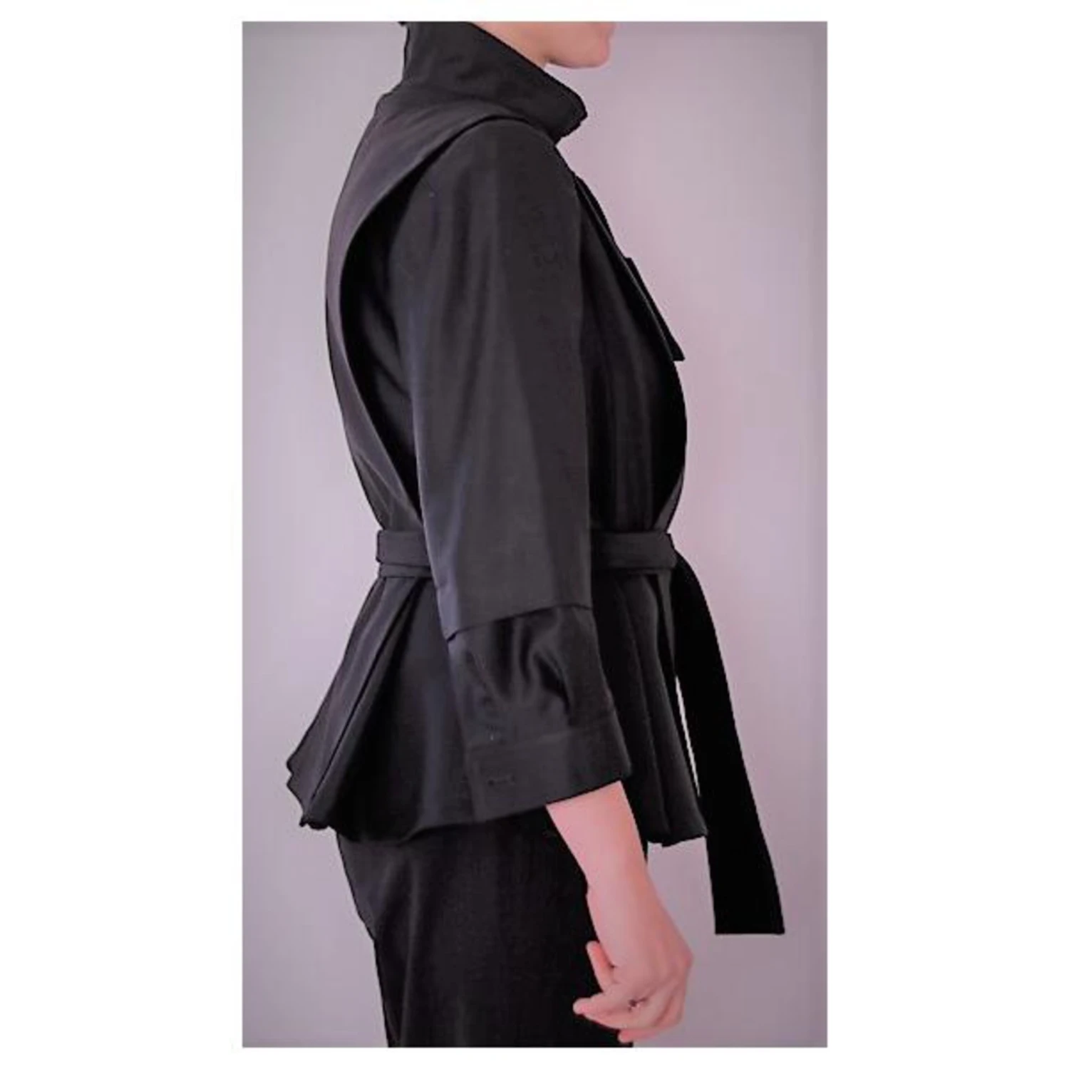 Veste élégante Yves Saint Laurent noire. Taille longue , ceintrée avec basque et grosse ceinture. Se ferme totalement jusqu’au col ou peut être portée ouverte. .Manches 3/4. Superbe avec un pantalon smocking ou jupe courte crayon. Acquise pour le mariage de ma fille. Très peu portée.
