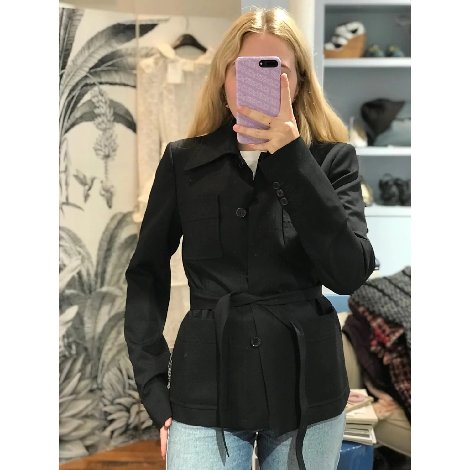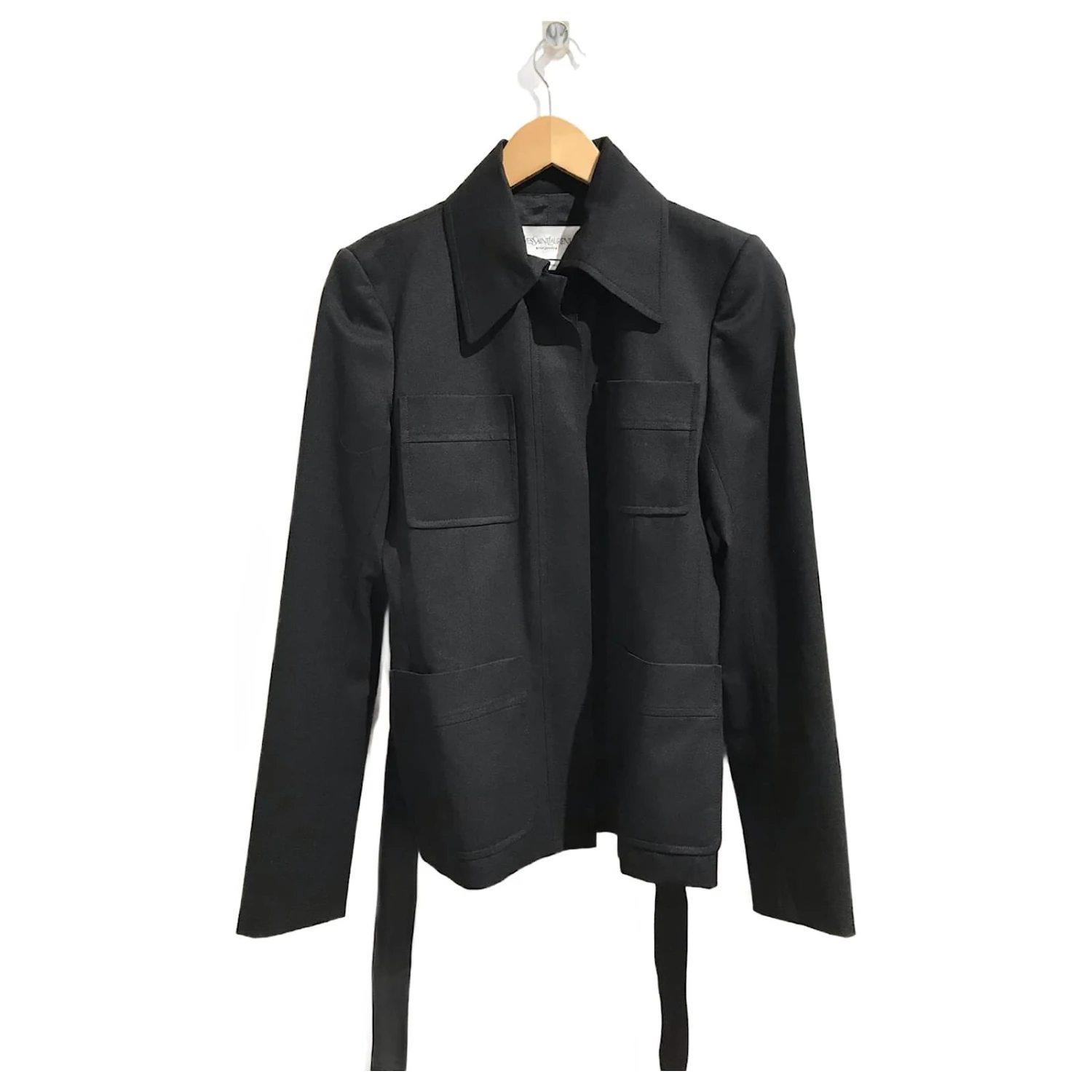Yves Saint Laurent Jacket, size 38. Superbe saharienne noire en laine avec fermeture boutonnée et ceinture amovible.
